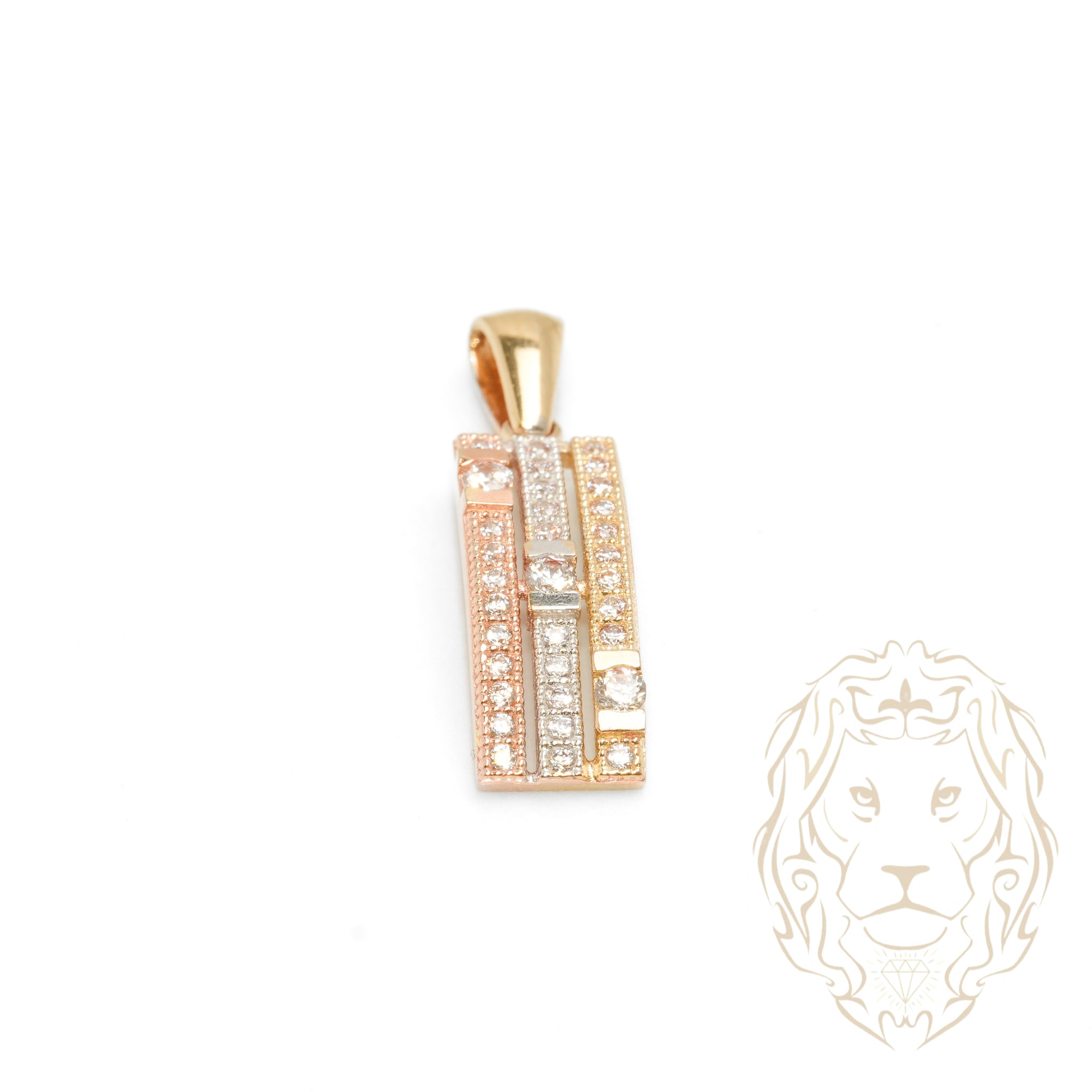 Pendentif - Or 10K tricolore jaune, blanc & rose rectangle pavé de cz - PEG608
