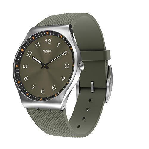 SKINEARTH (SS07S103) est dotée d’un bracelet en caoutchouc vert et d’un cadran brossé ton sur ton relevé de touches blanches et orange.