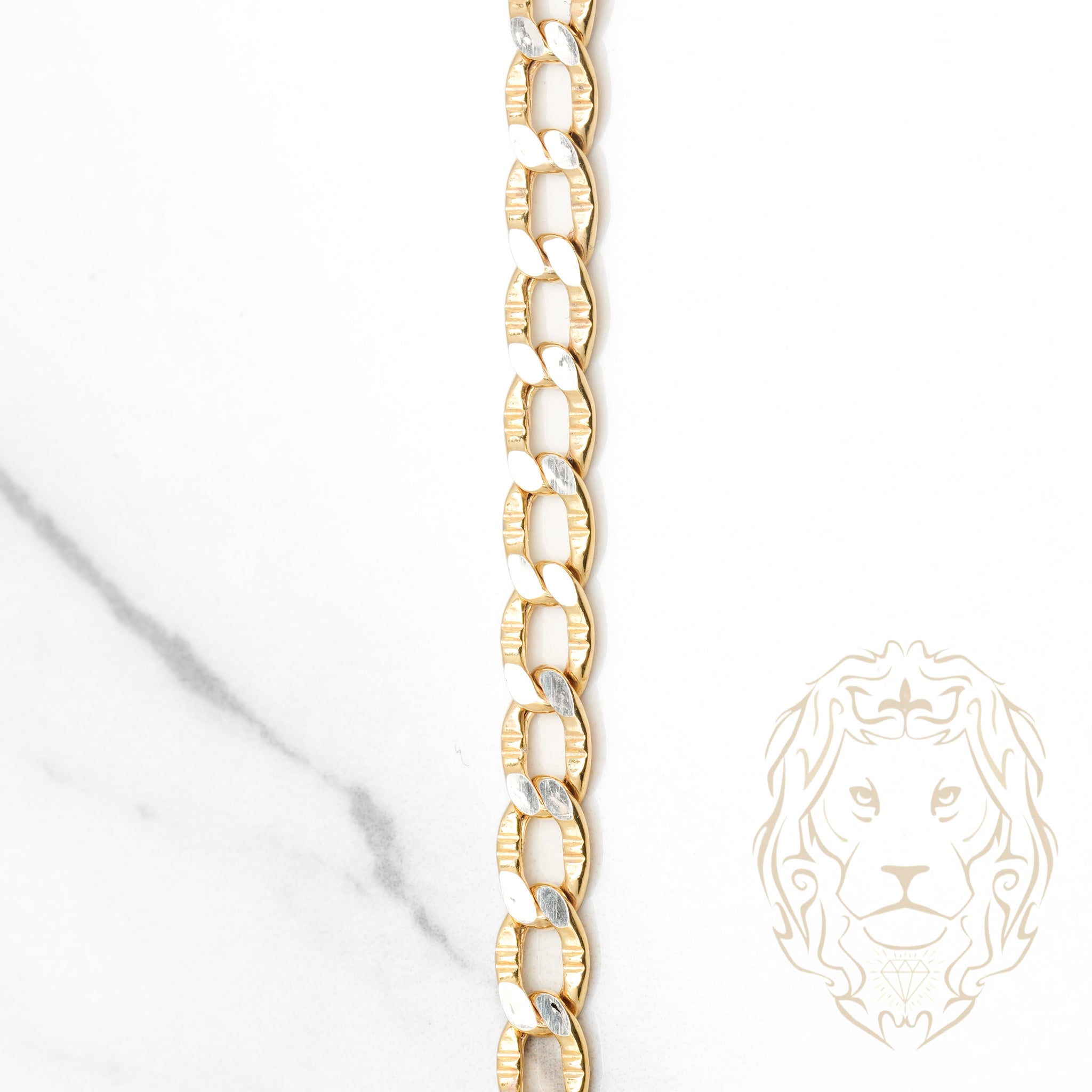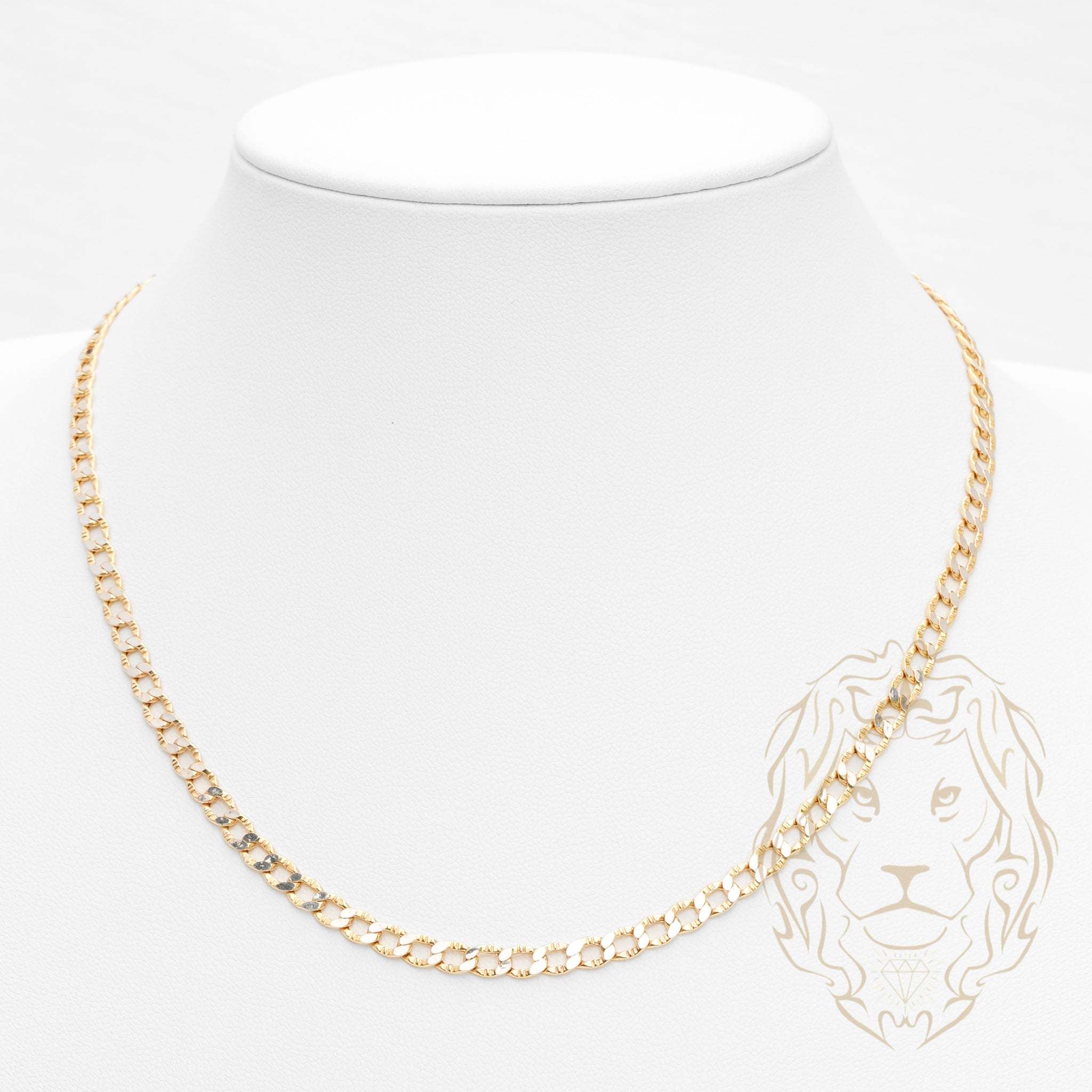 Chaîne curb deux tons en or 10K jaune et blanc 4.3mm avec coupe diamant pour un fini lumineux et moderne.