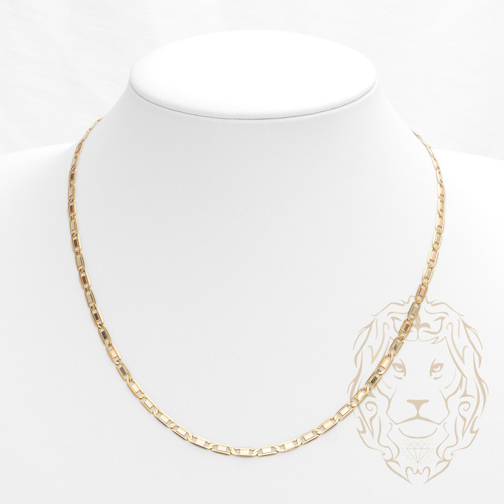 Cette chaîne marin plate en or 18K de 3mm combine les trois ors avec finesse pour un look unique et lumineux.