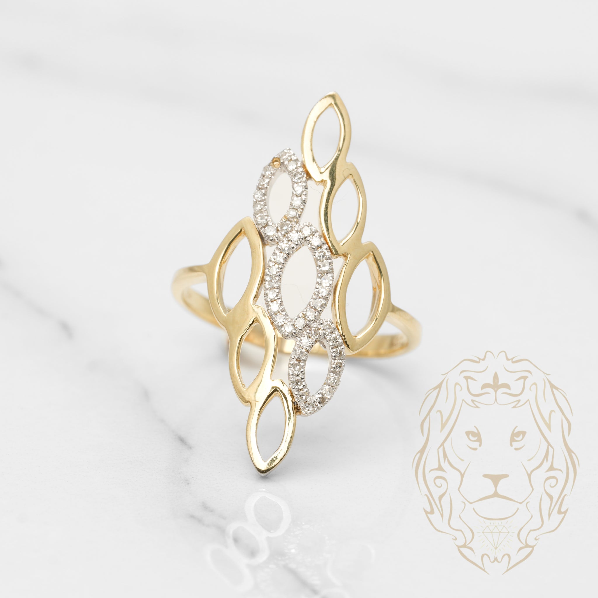 Bague cocktail - Or 10K deux tons jaune & blanc losanges pavé de diamants naturels 0.15CT - RIGD224