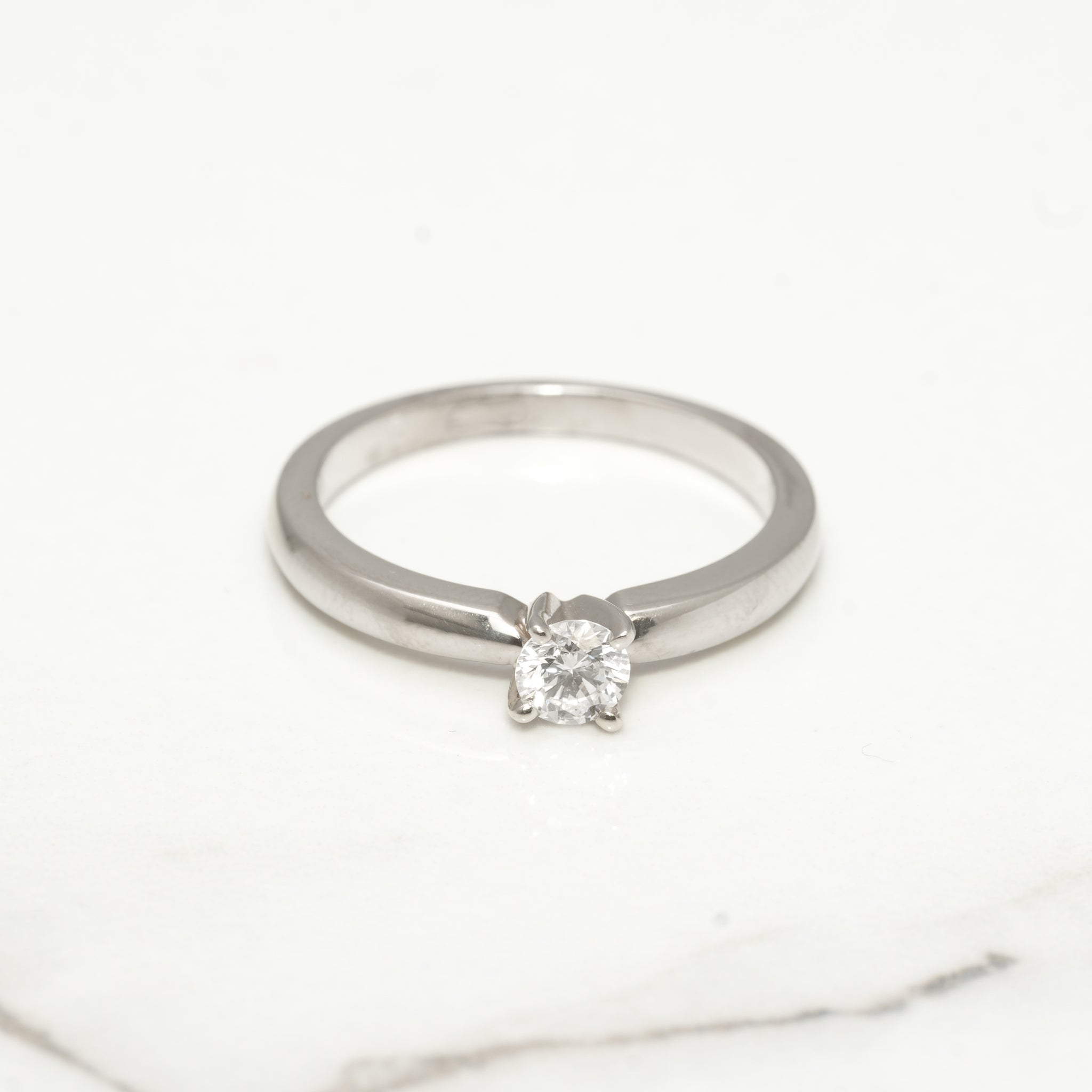 Bague de fiançailles - Or 14K blanc solitaire diamant naturel coupe brillant 0.15CT - RIGD017