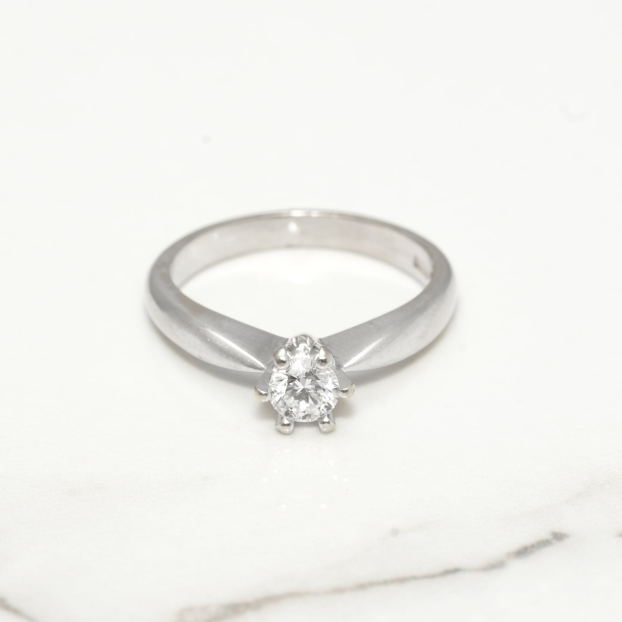Bague de fiançailles - Or 18K blanc solitaire diamant naturel coupe brillant 0.20CT - RIGD025