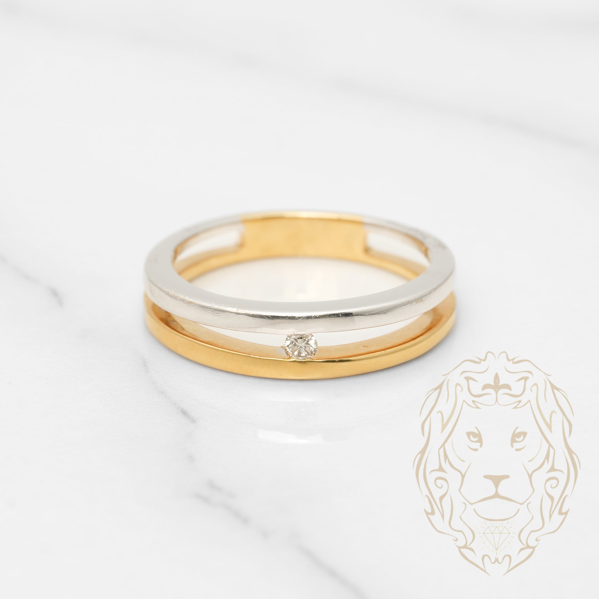 Cette bague jonc en or deux tons 14K, avec un diamant naturel de 0.03 carat serti sous tension, allie simplicité et sophistication.