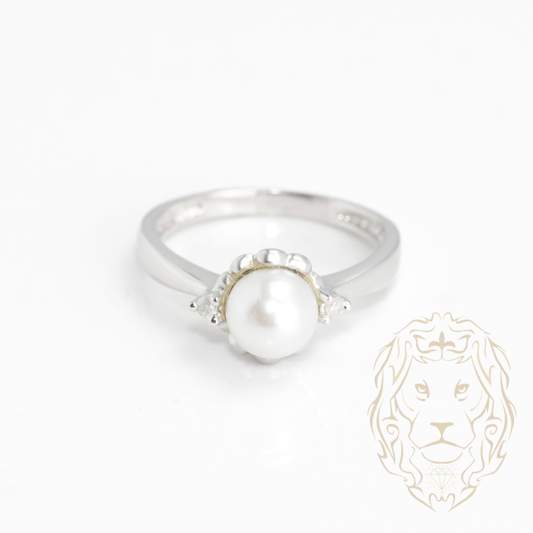 Bague - Or 10K blanc perle & diamants naturels 0.06CT - RIGD377