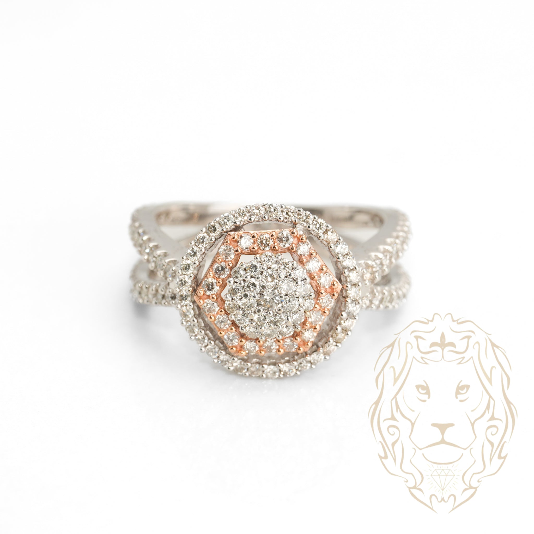 Bague - Or 10K deux tons blanc & rose art déco sertie de diamants naturels 1.10CT avec monture à tige fendue pavée - RIGD317