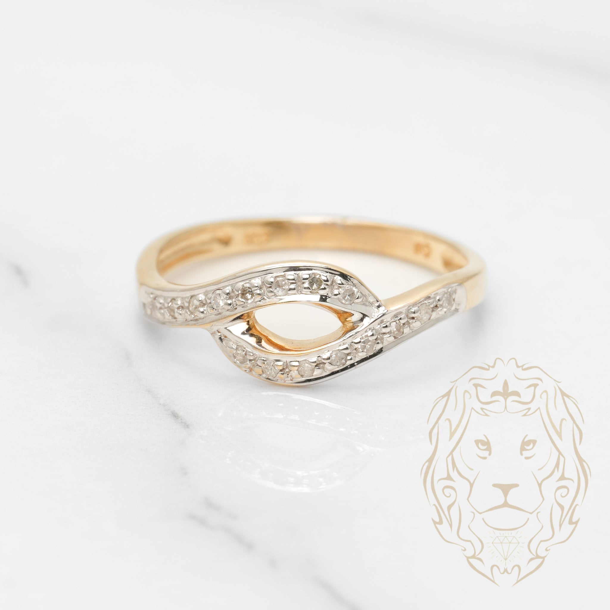 Cette bague en or deux tons 10K, décorée de bandes pavées de 0.10 carat de diamants naturels, offre une élégance intemporelle.