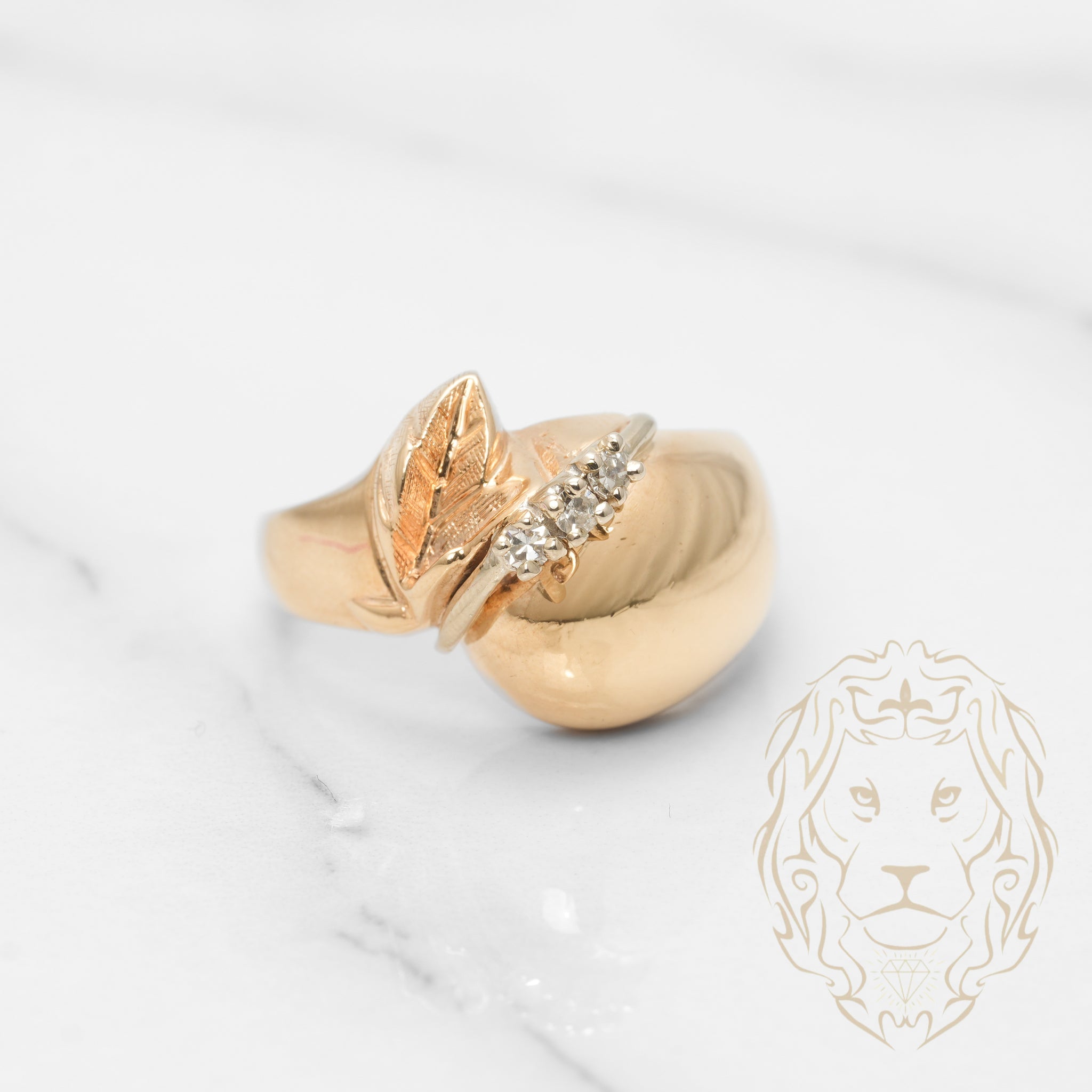 Bague - Or 10K deux tons jaune & blanc bouffie & trois pierres diamants naturels 0.03CT - RIGD236