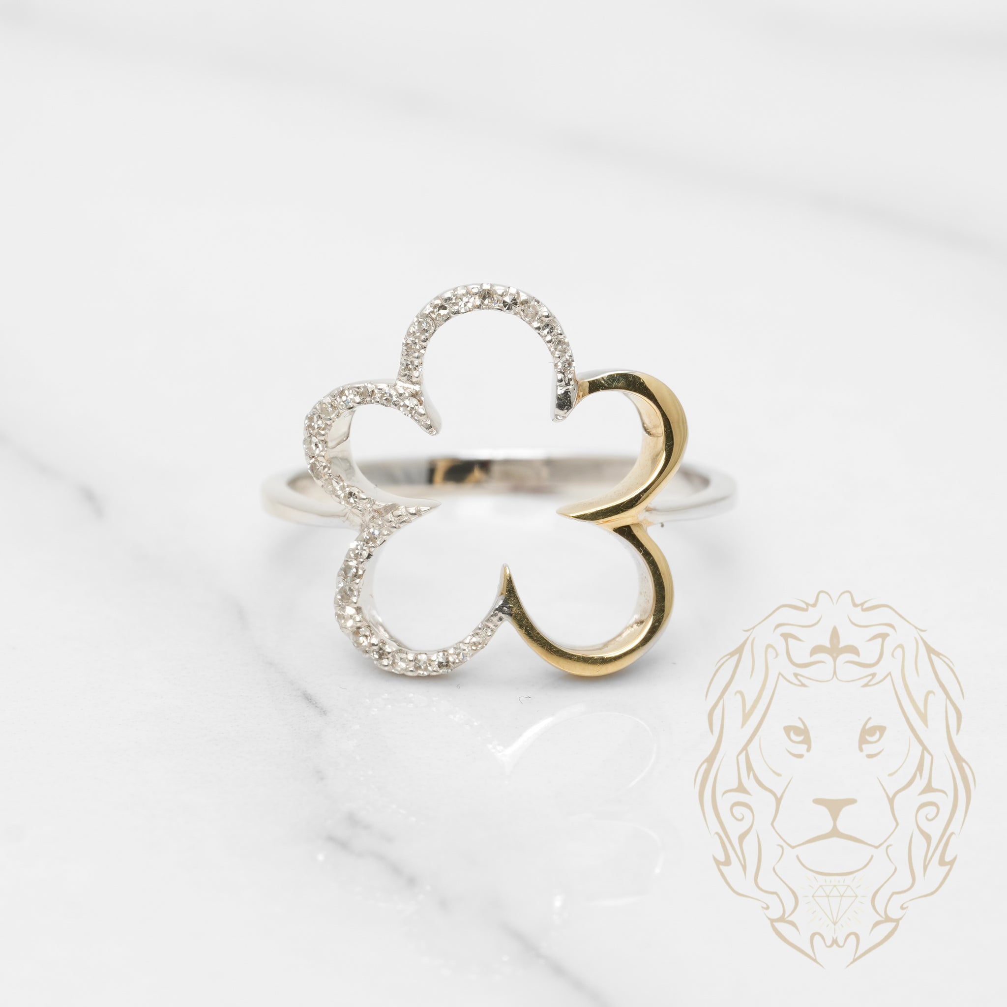 Bague - Or 10K deux tons jaune & blanc contour d'une fleur pavé de diamants naturels 0.10CT - RIGD197