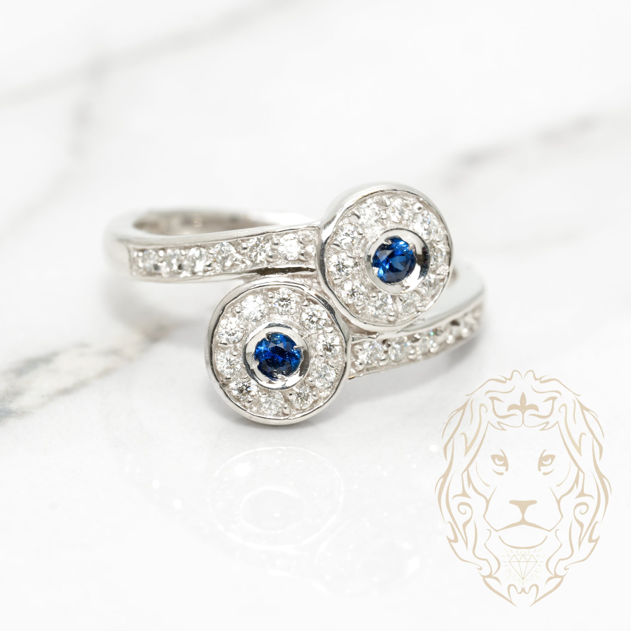 Bague - Or 14K blanc sertie de saphirs 0.10CT & pavé de diamants naturels 0.30CT - RIGD146