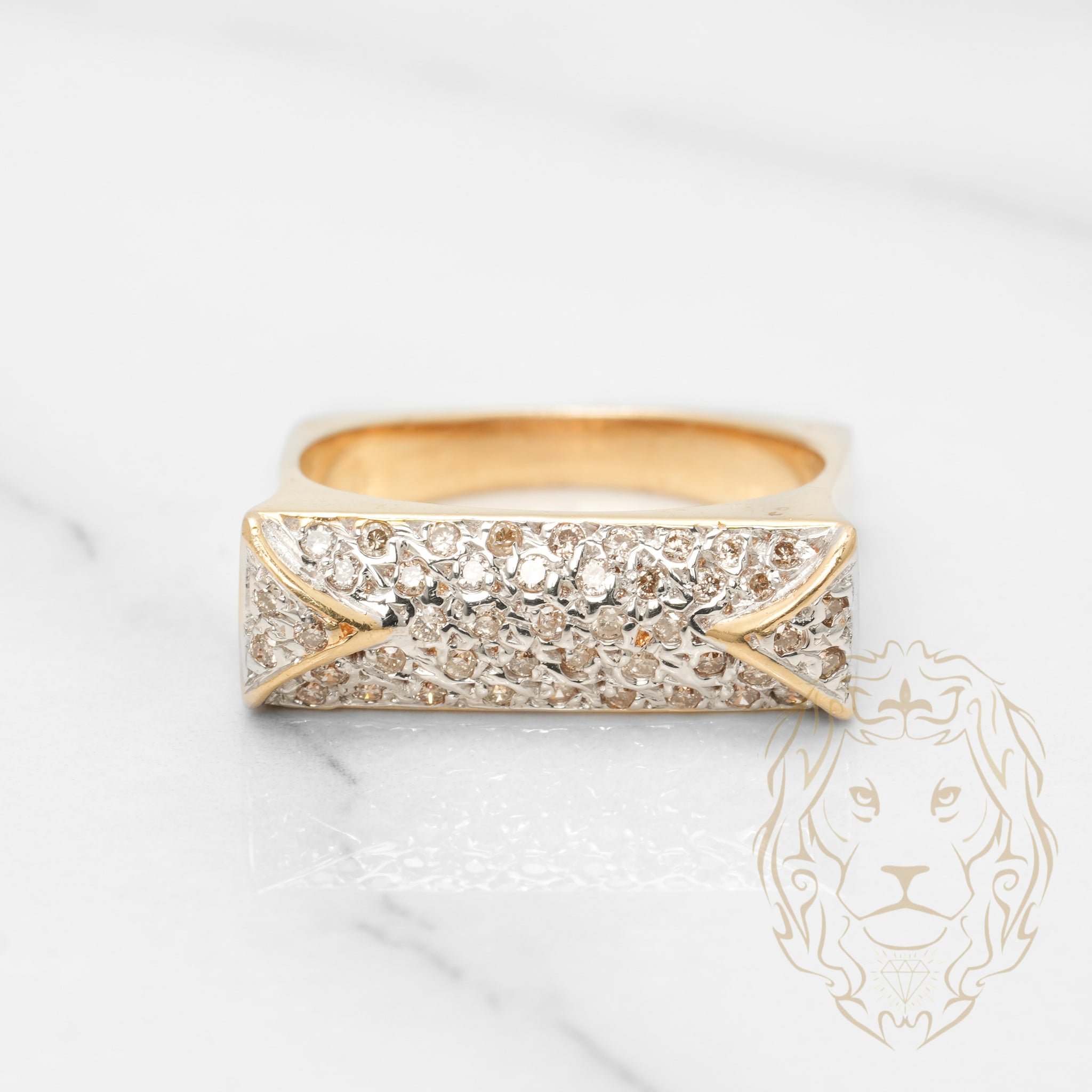 Cette bague en or deux tons 14K, ornée d'une barre pavée de 0.12 carat de diamants naturels, est idéale pour un style épuré et moderne.