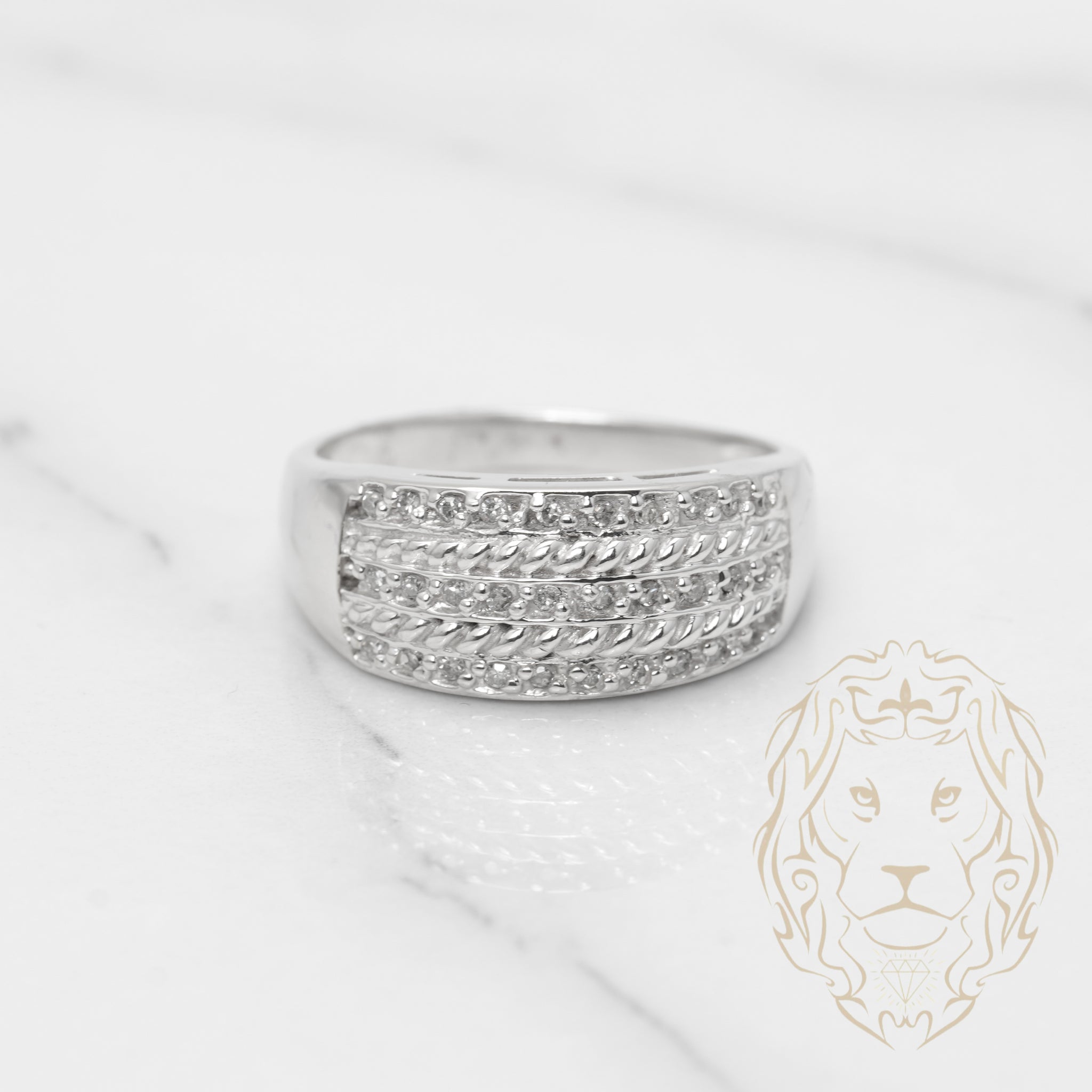 Ring - 10K white gold with rows of twisted and paved natural diamonds 0.15CT - RIGD164