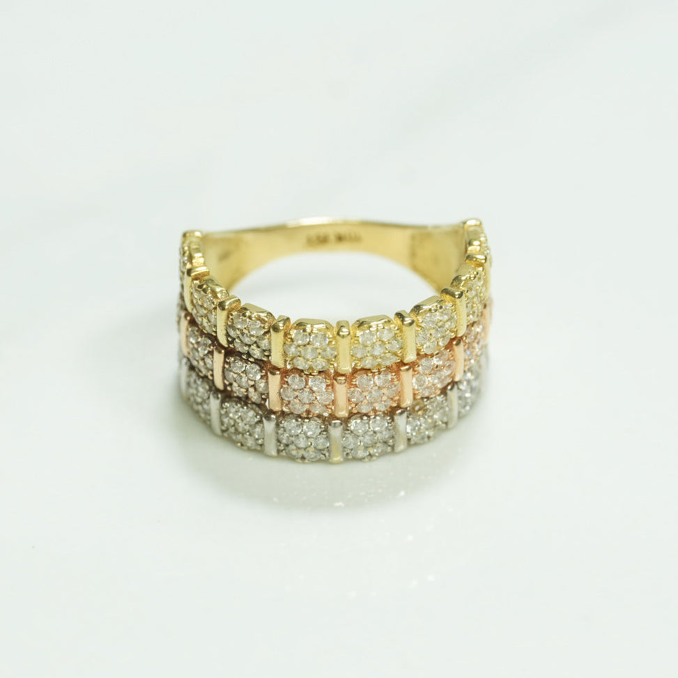 Women's ring - 10K Gold semi-eternity stacked composite stones tricolor yellow, white & pink cz - RIG142
