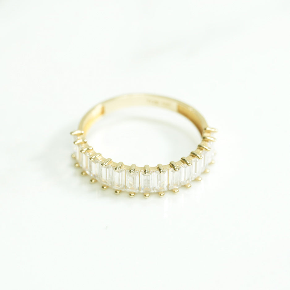 Discover timeless elegance with this women's 10K gold ring adorned with emerald-cut cz stones, designed to captivate and dazzle. Each cz stone is carefully cut to reflect light brilliantly, creating a semi-eternal effect that symbolizes love and commitment. This ring is the perfect choice for those looking for a classic yet refined piece of jewelry, ideal for any special occasion. Add a touch of luxury to your jewelry collection with this ring that combines quality, beauty and style.