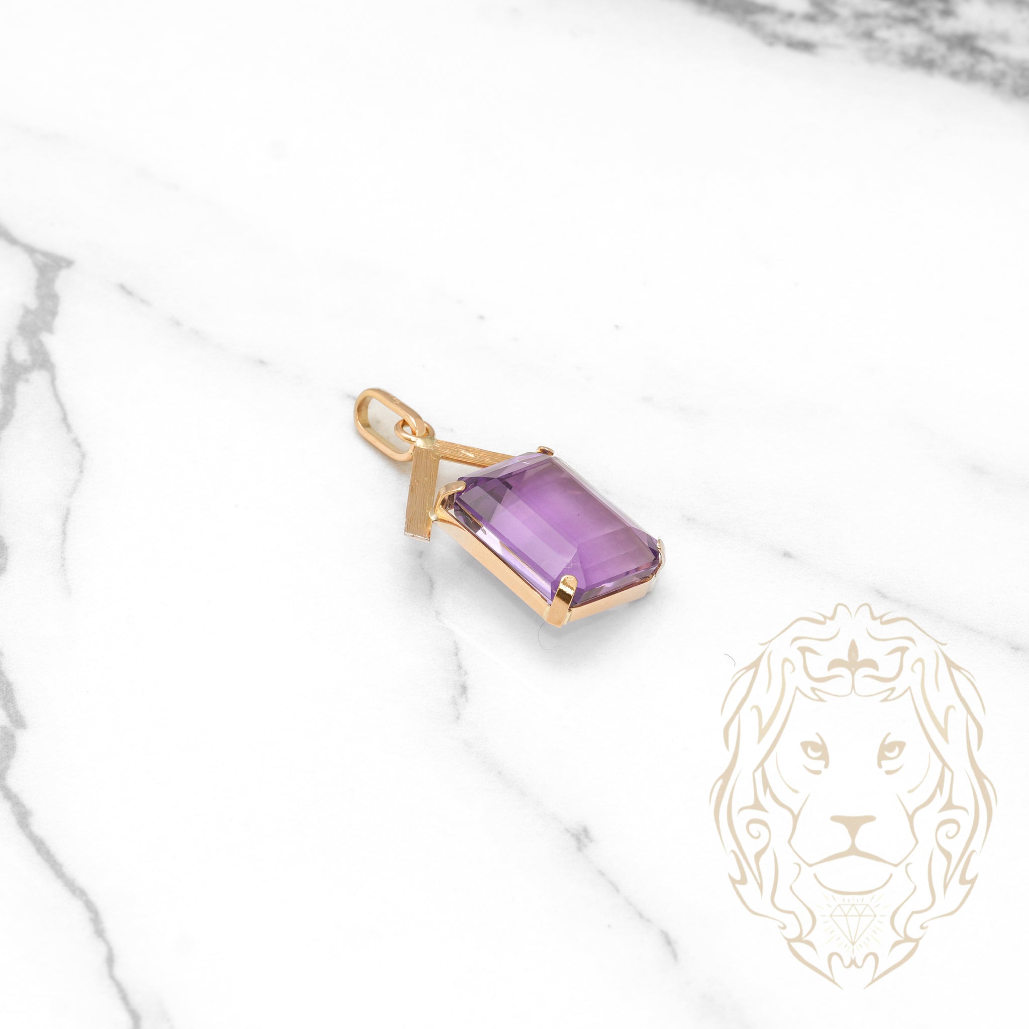 Pendant - 18K Yellow Gold Emerald Cut Purple Stone - PEG521