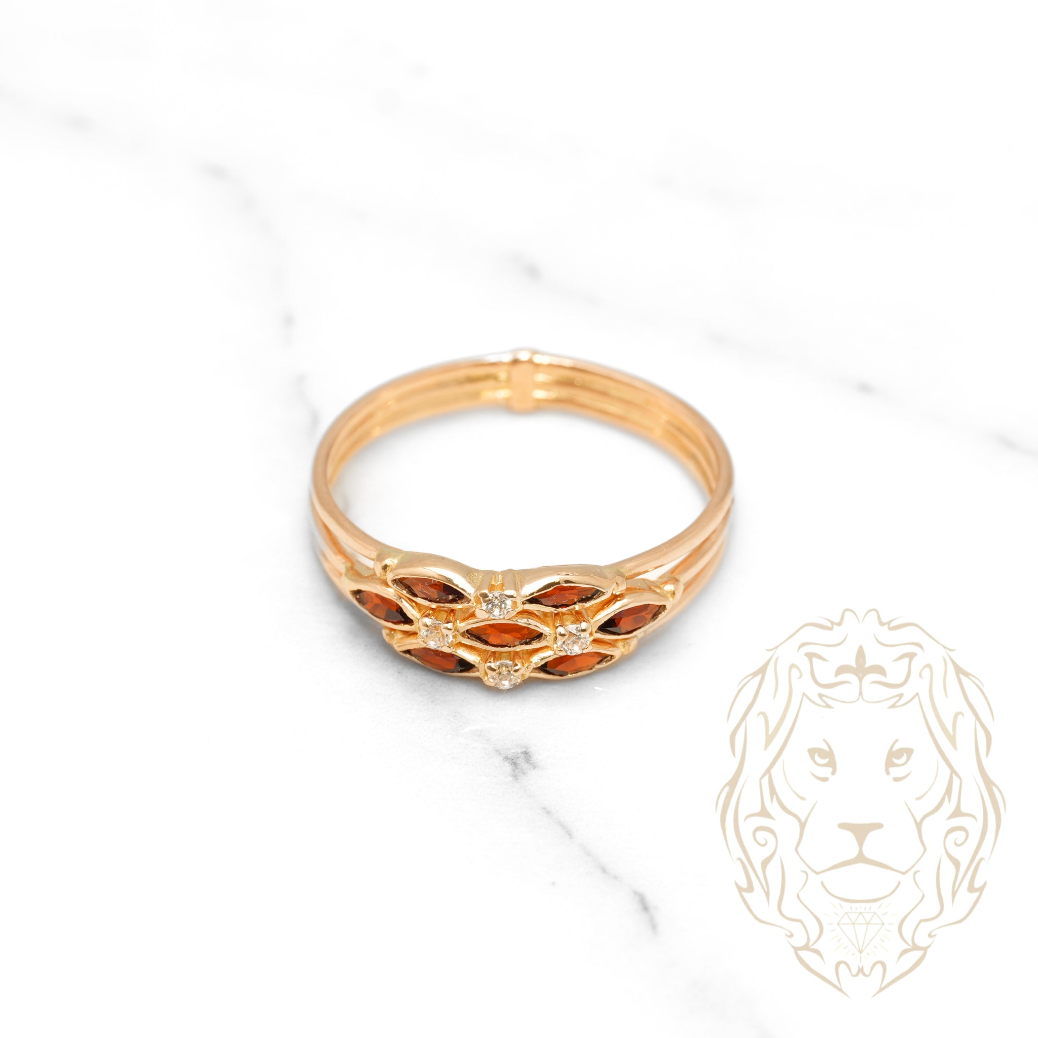 Woman's Ring - 18K Yellow Gold Honeycomb Style with Red CZ Stones - RIG483