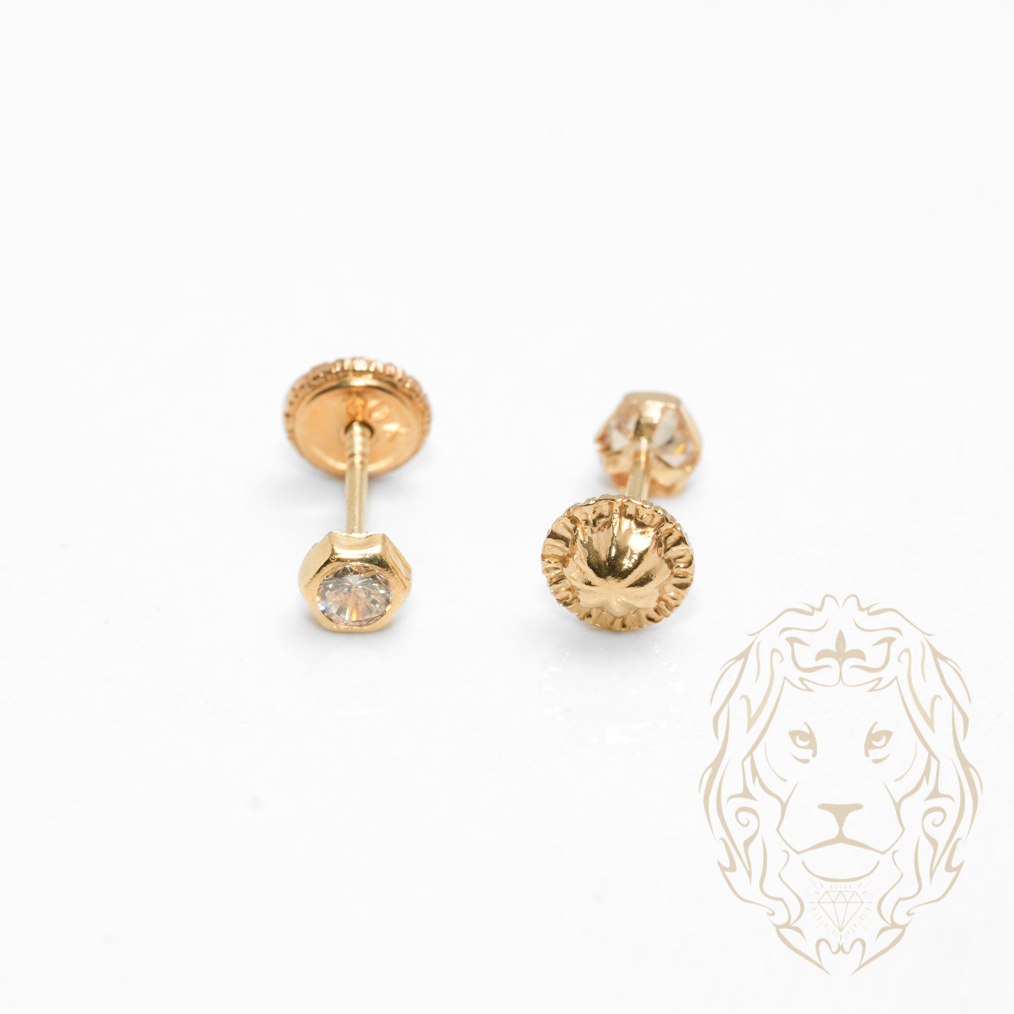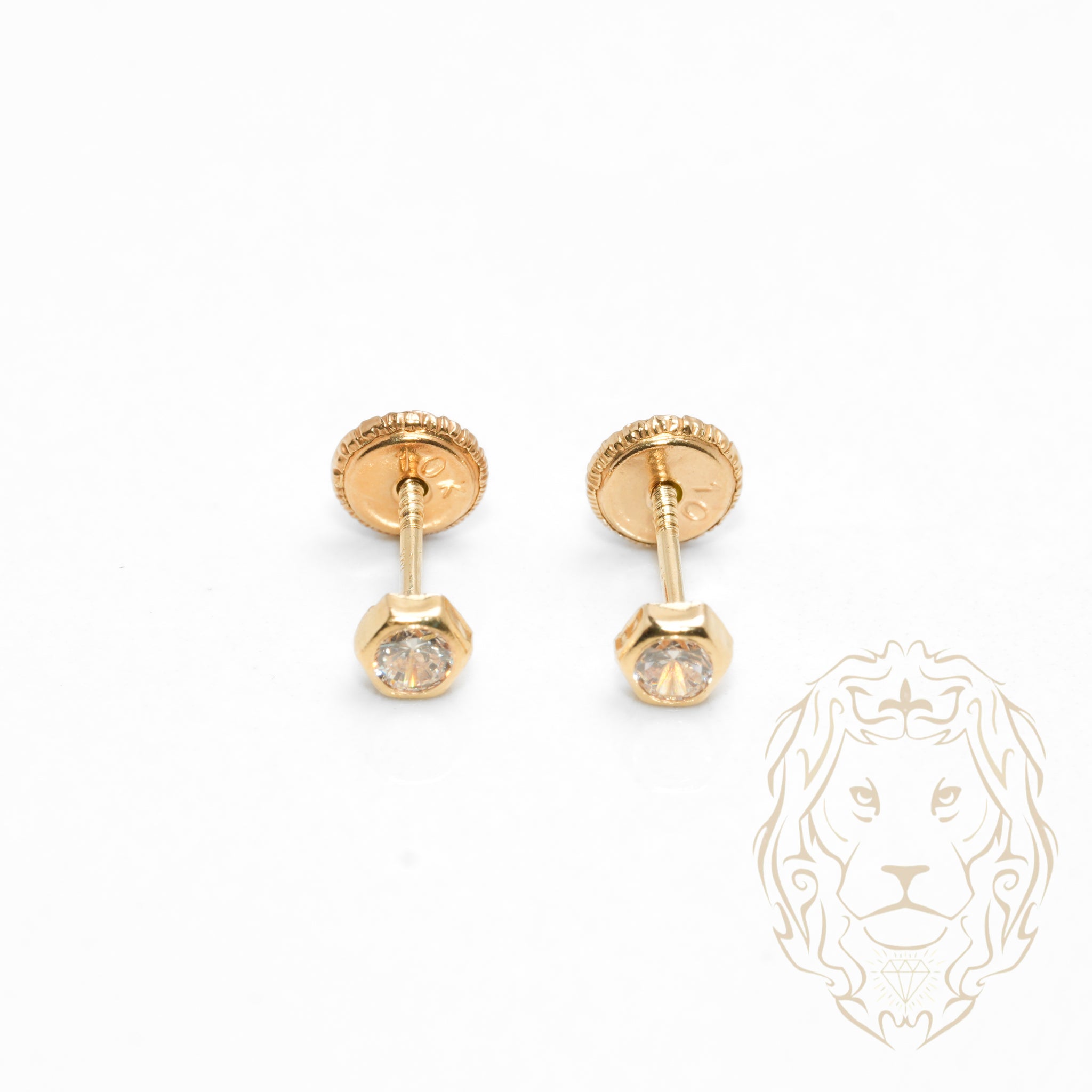 Screw Studs - Gold 10K yellow hex set with cz 3mm - BOG739