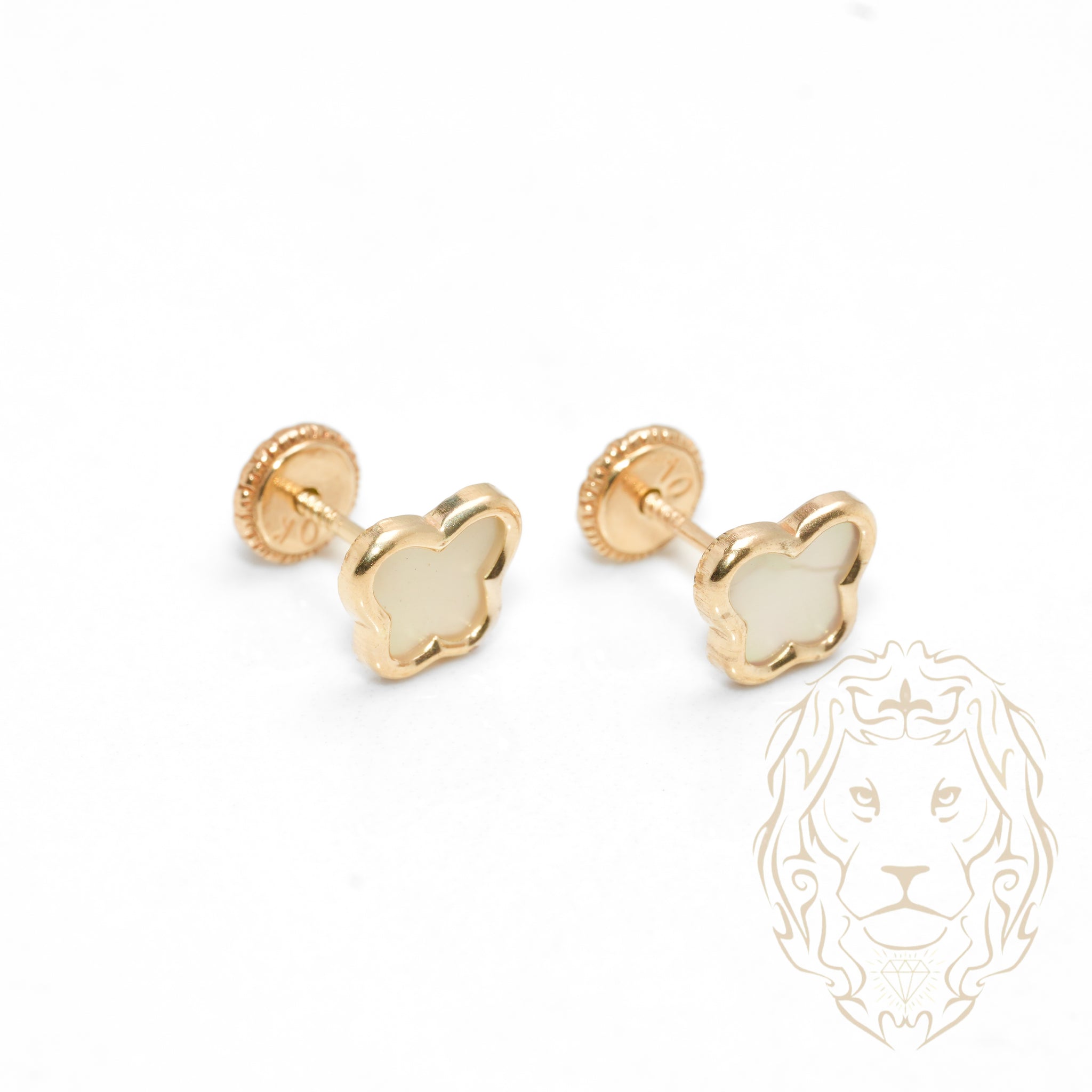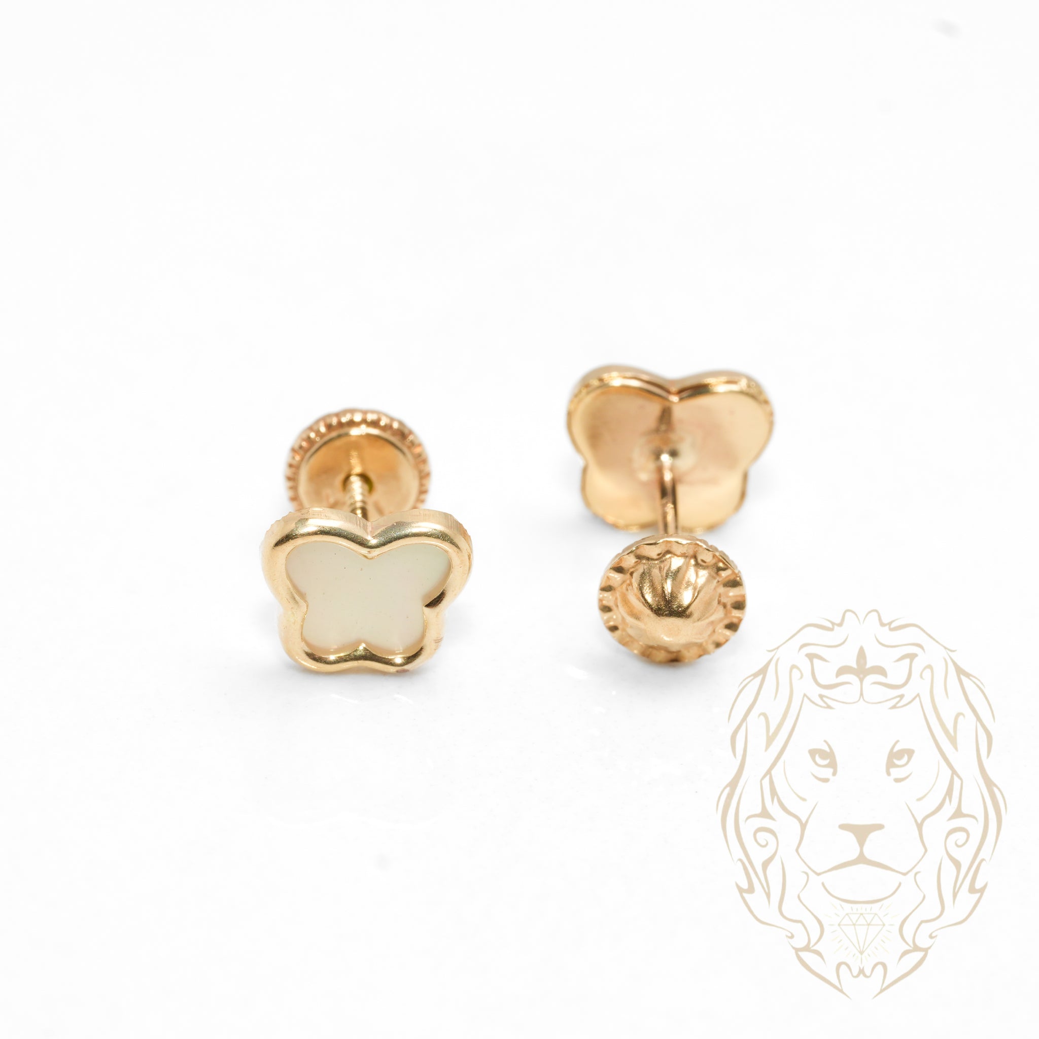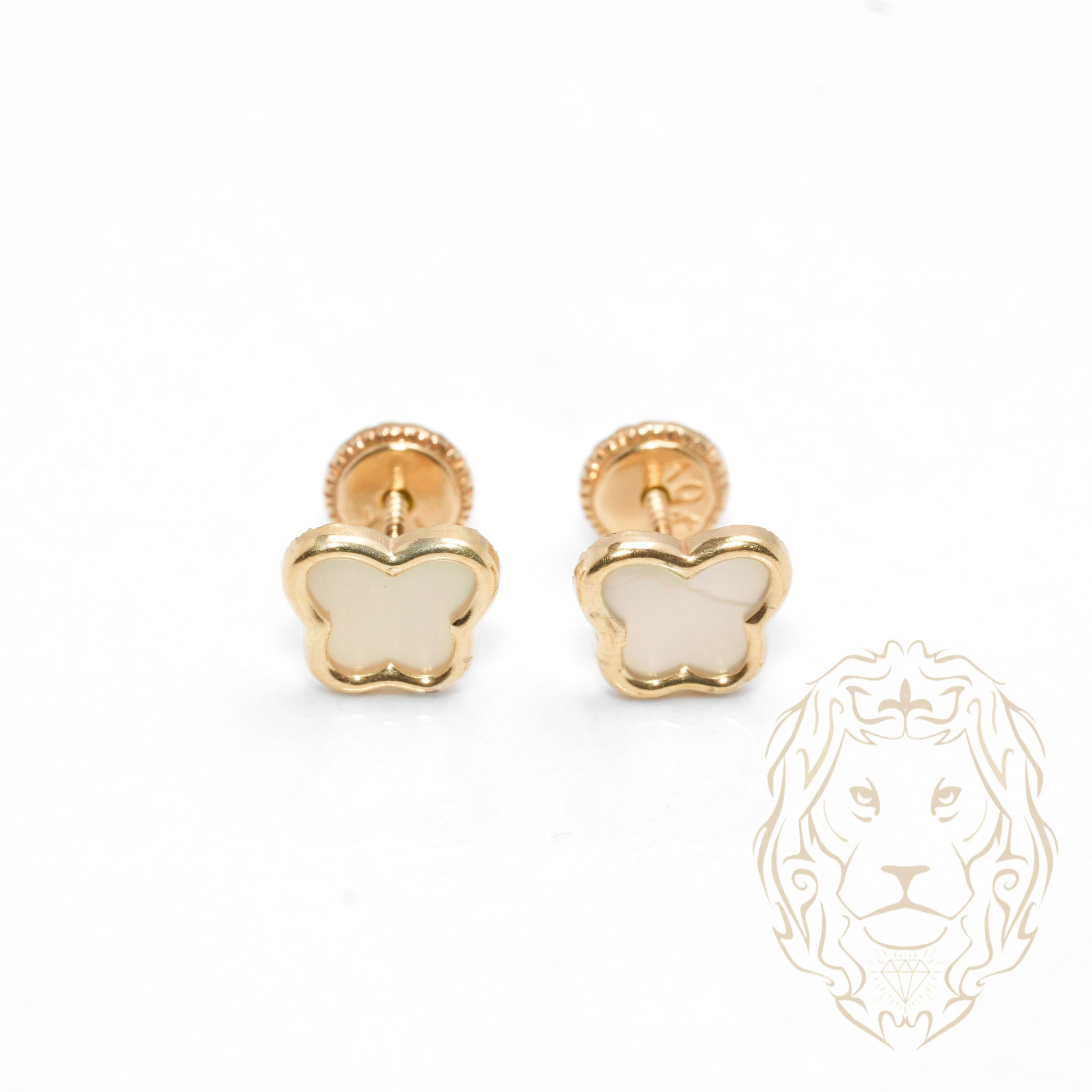 Screw Studs - 10K Yellow Gold Butterfly Mother of Pearl - BOG713
