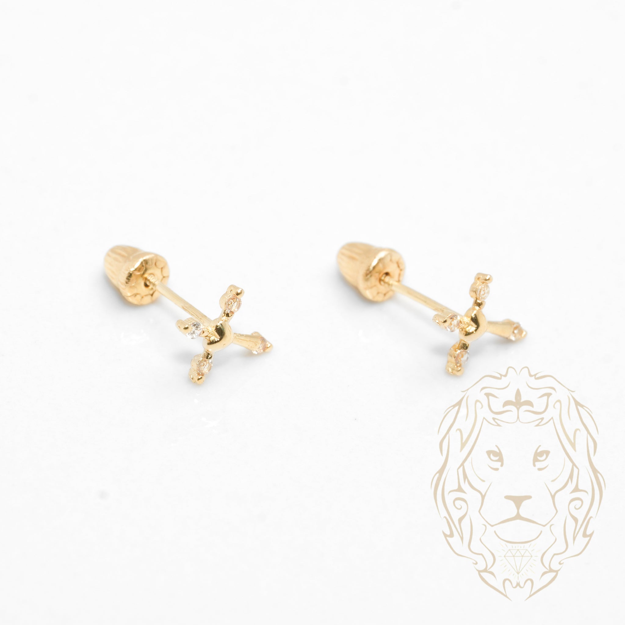 Studs to screw - 10K Gold yellow cross & heart with cz stones - BOG775