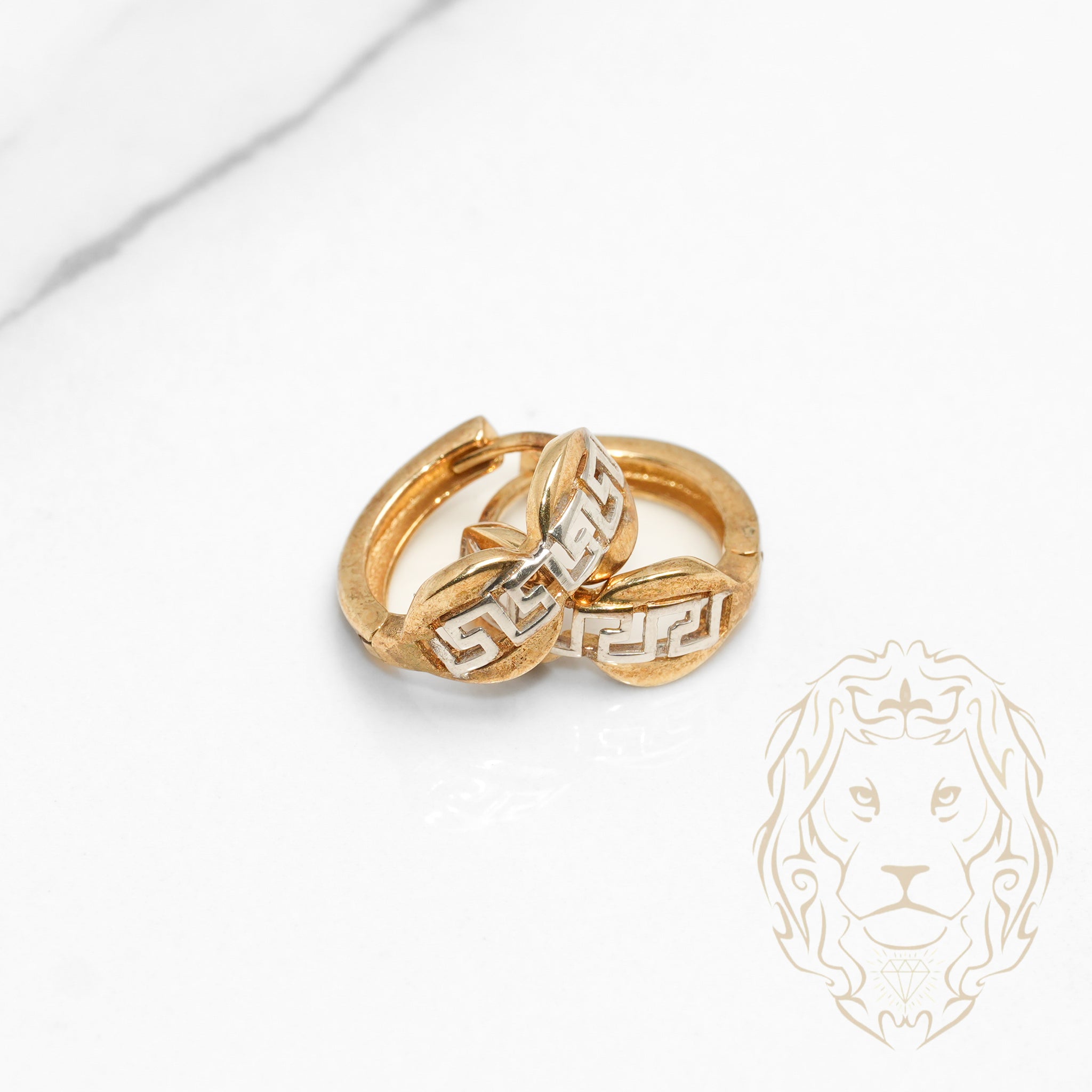 Huggies - 10K Gold two-tone yellow & white Greek key design 6mm X 10mm - BOG809