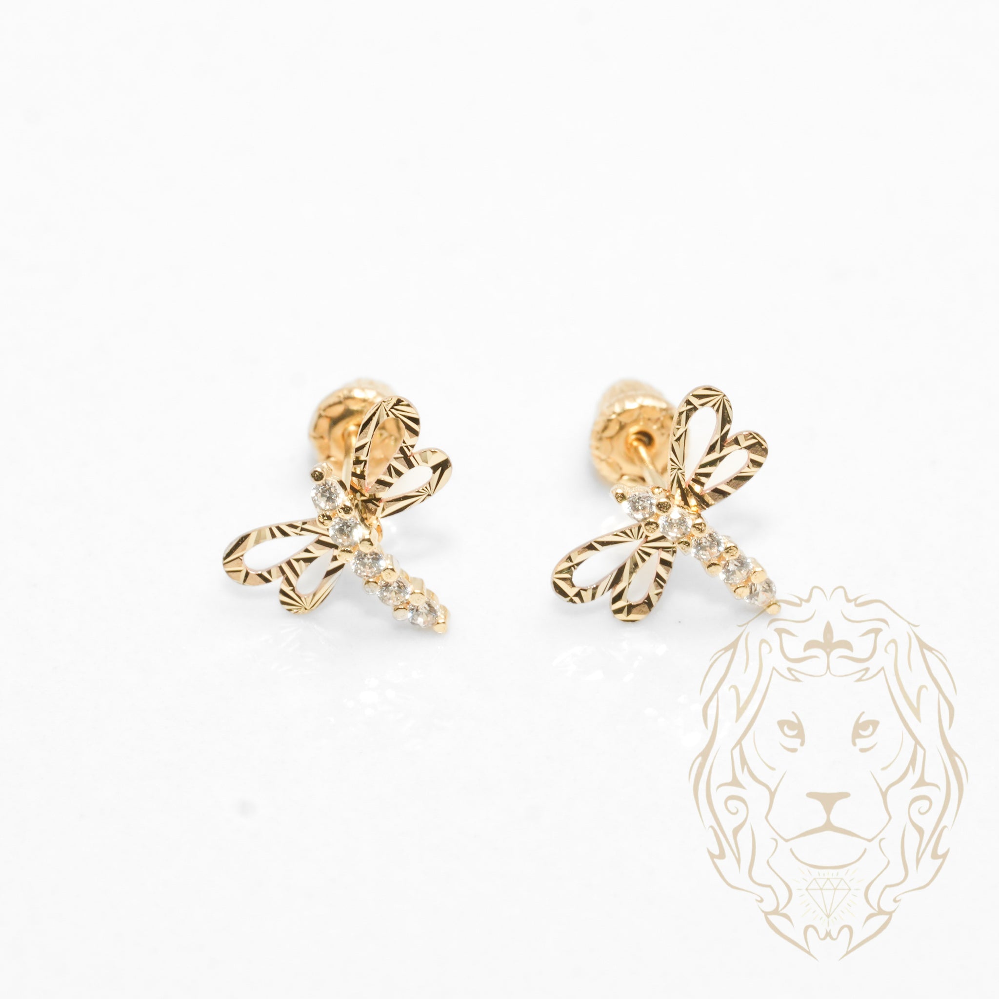 These dragonfly-shaped 10K yellow gold earrings are paved with sparkling cz, evoking the delicacy of nature with brilliance.