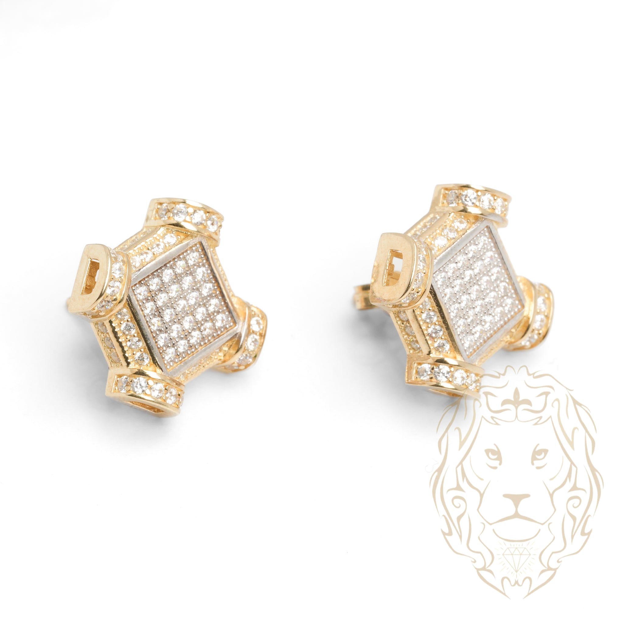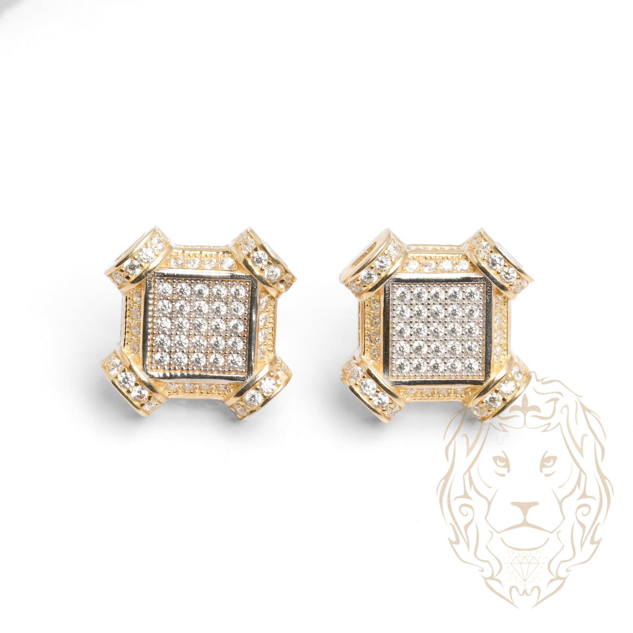 Studs - Or 10K deux tons jaune & blanc carré pavé de cz - BOG925