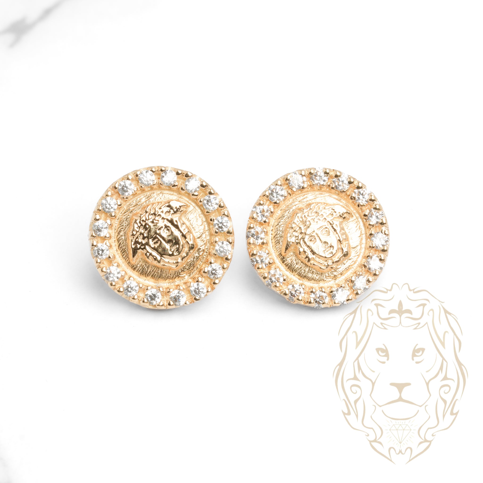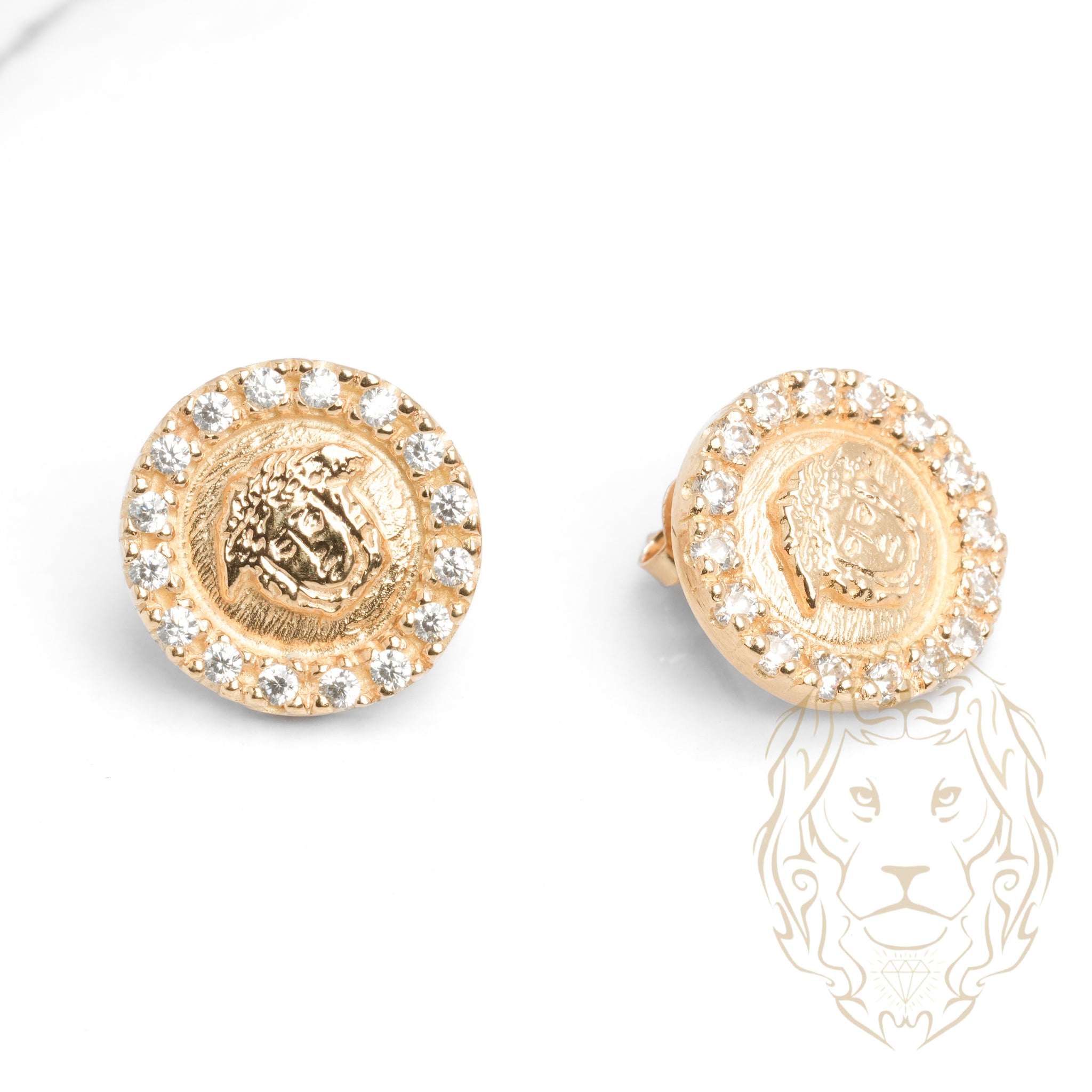 Studs méduse en or 10K jaune entièrement pavés de cz, parfaits pour affirmer votre style.