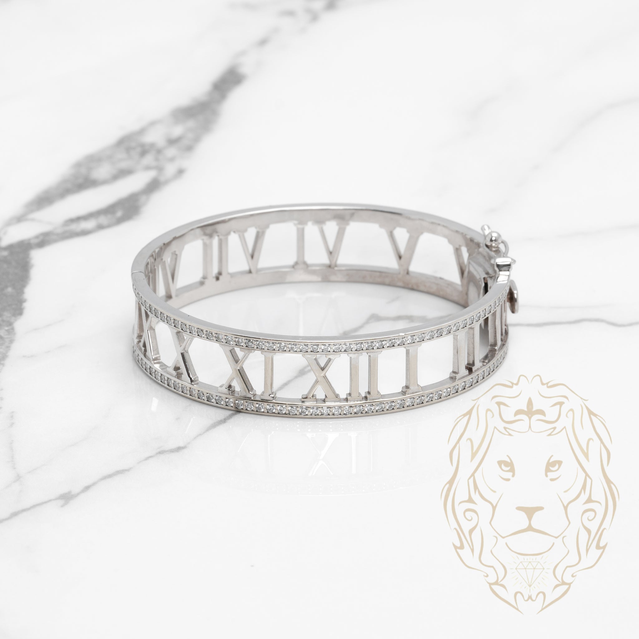 Bracelet jonc - Or 10K blanc chiffres romains pavé de diamants lab 3.00CT - BRGL018