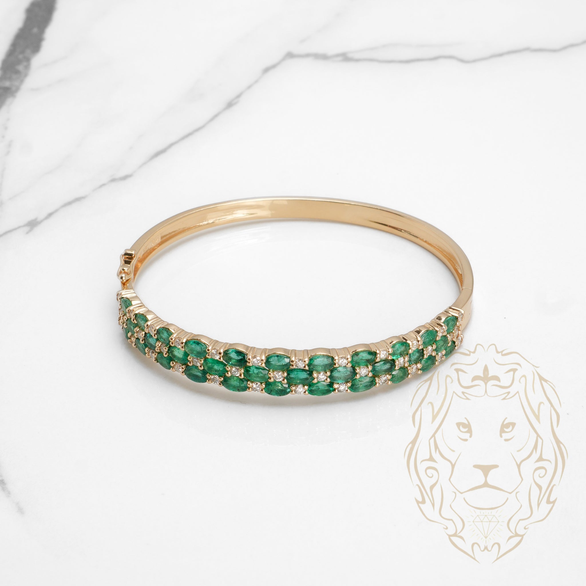Ce bracelet jonc en or jaune 14K est pavé de pierres vertes et de cz, pour une touche colorée raffinée et pleine de vie.