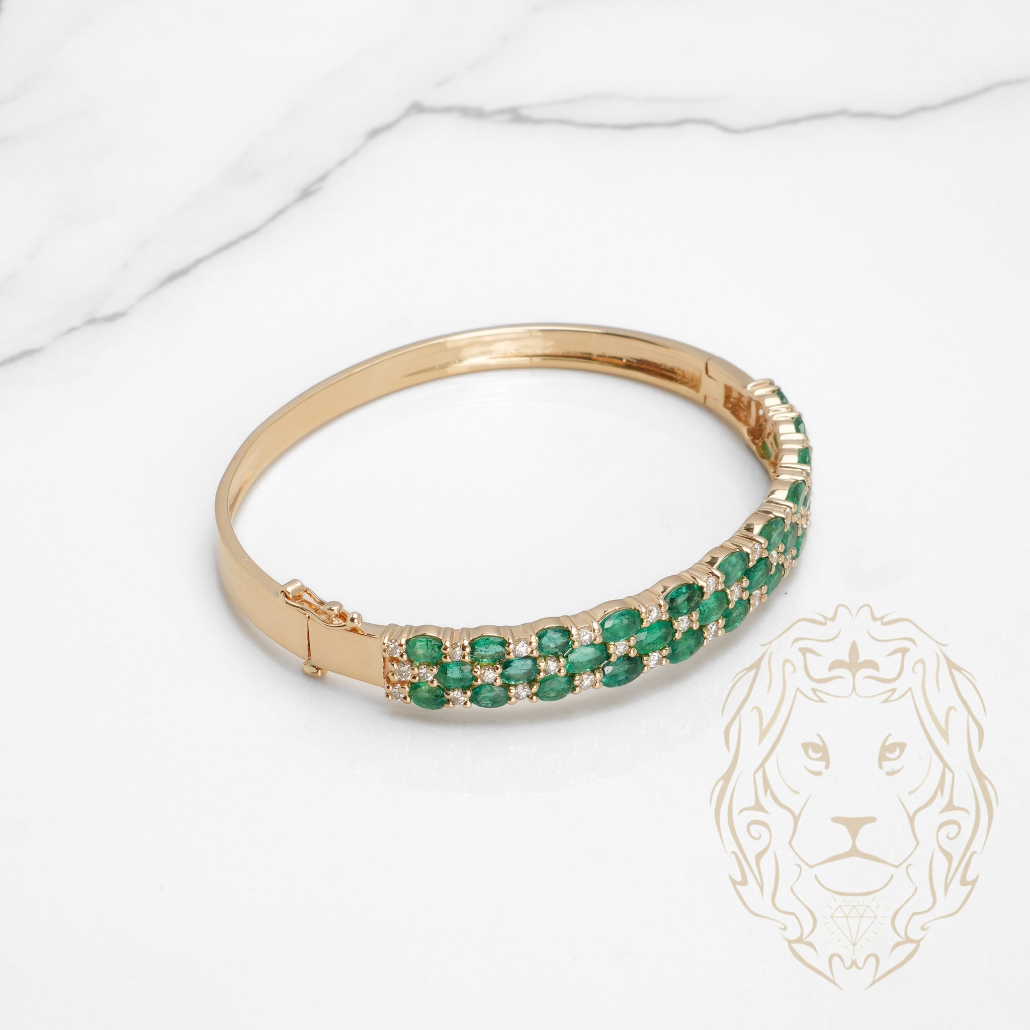 Bracelet jonc - Or 14K jaune pavé de pierres vertes & cz - BRG596