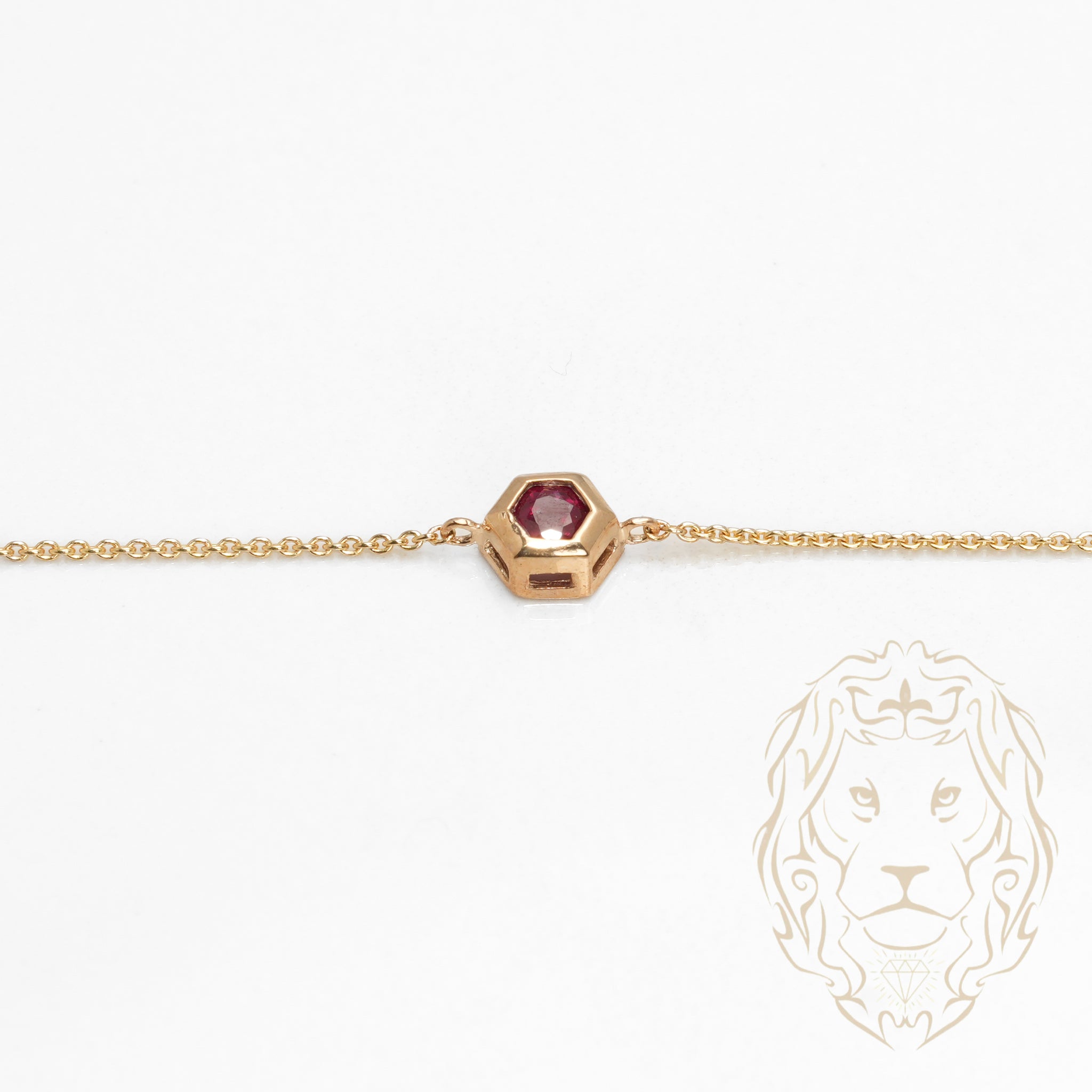 Ce bracelet en or jaune 10K est orné de trois rubis totalisant 0.36CT, sertis clos pour une touche classique et précieuse.