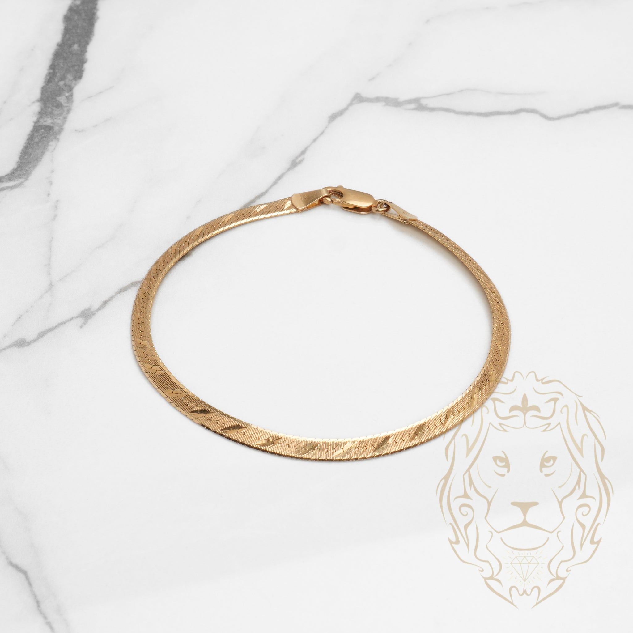 Ce bracelet en or 14K jaune à chevrons de 4mm reflète la lumière grâce à sa coupe diamant, pour une finition élégante et texturée.
