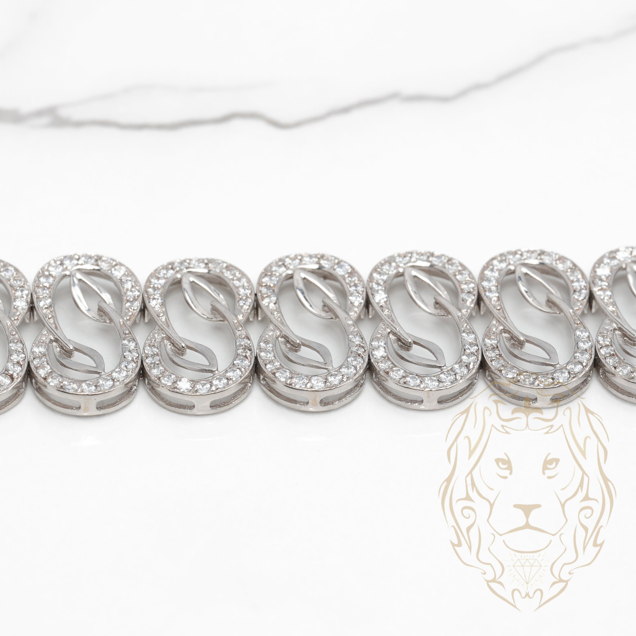 Ce bracelet en or 18K blanc se distingue par ses volutes pavées de cz, parfait pour sublimer vos tenues avec finesse.