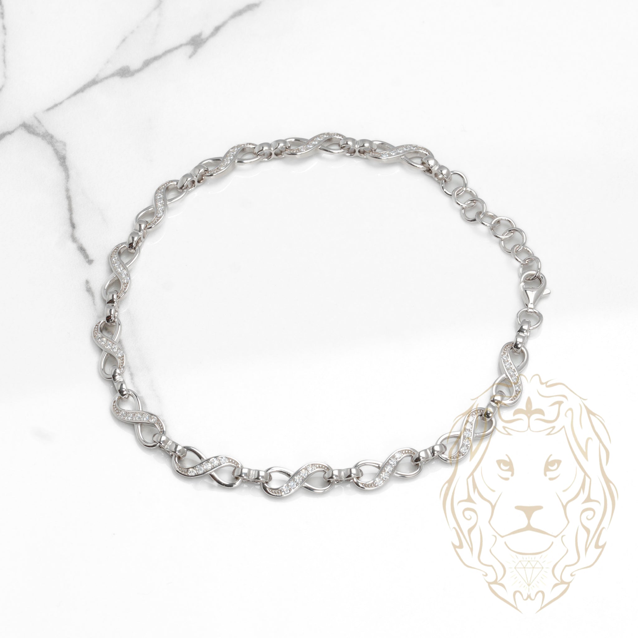 Le symbole infini est sublimé par un pavé de cz étincelant, parfait pour symboliser un lien fort et intemporel.