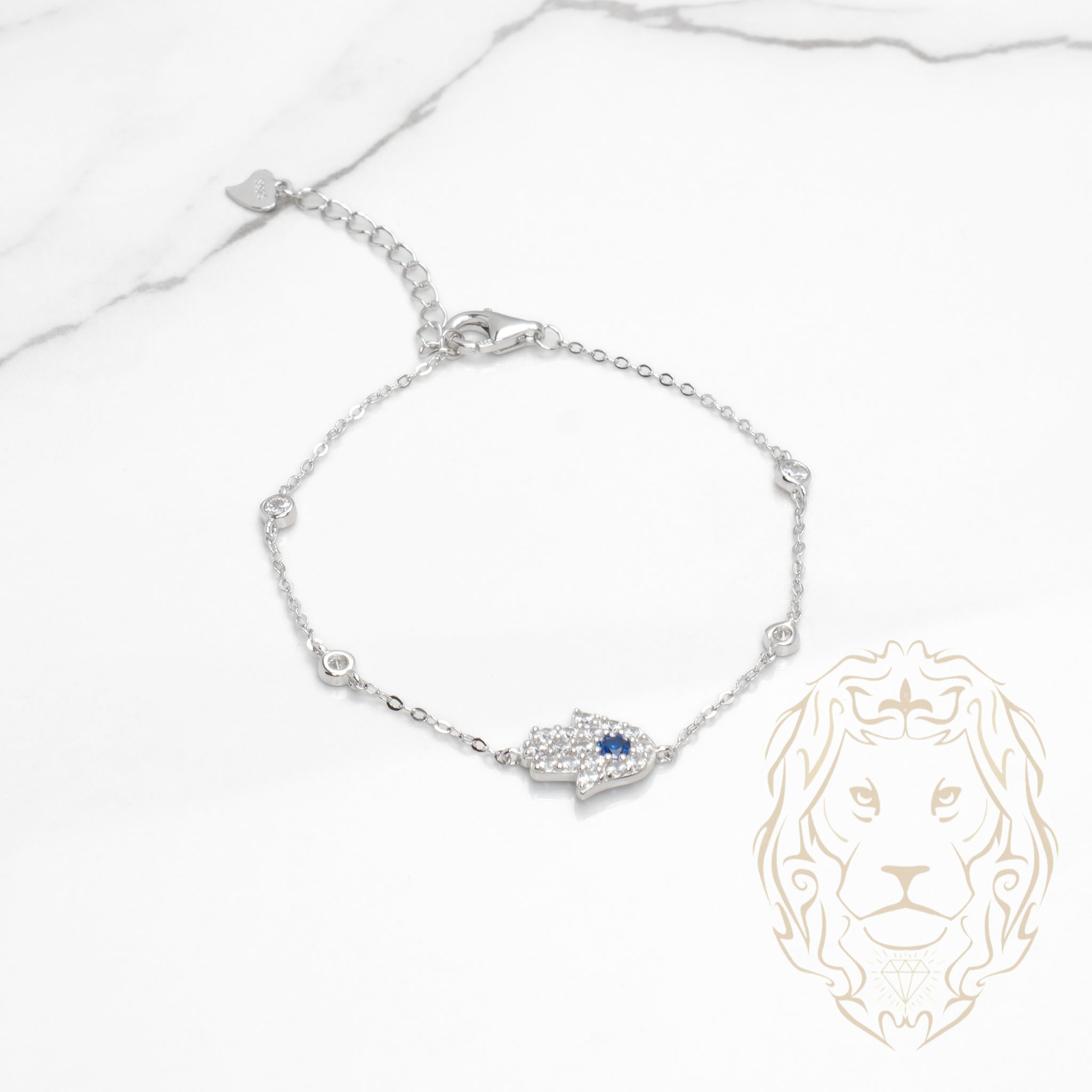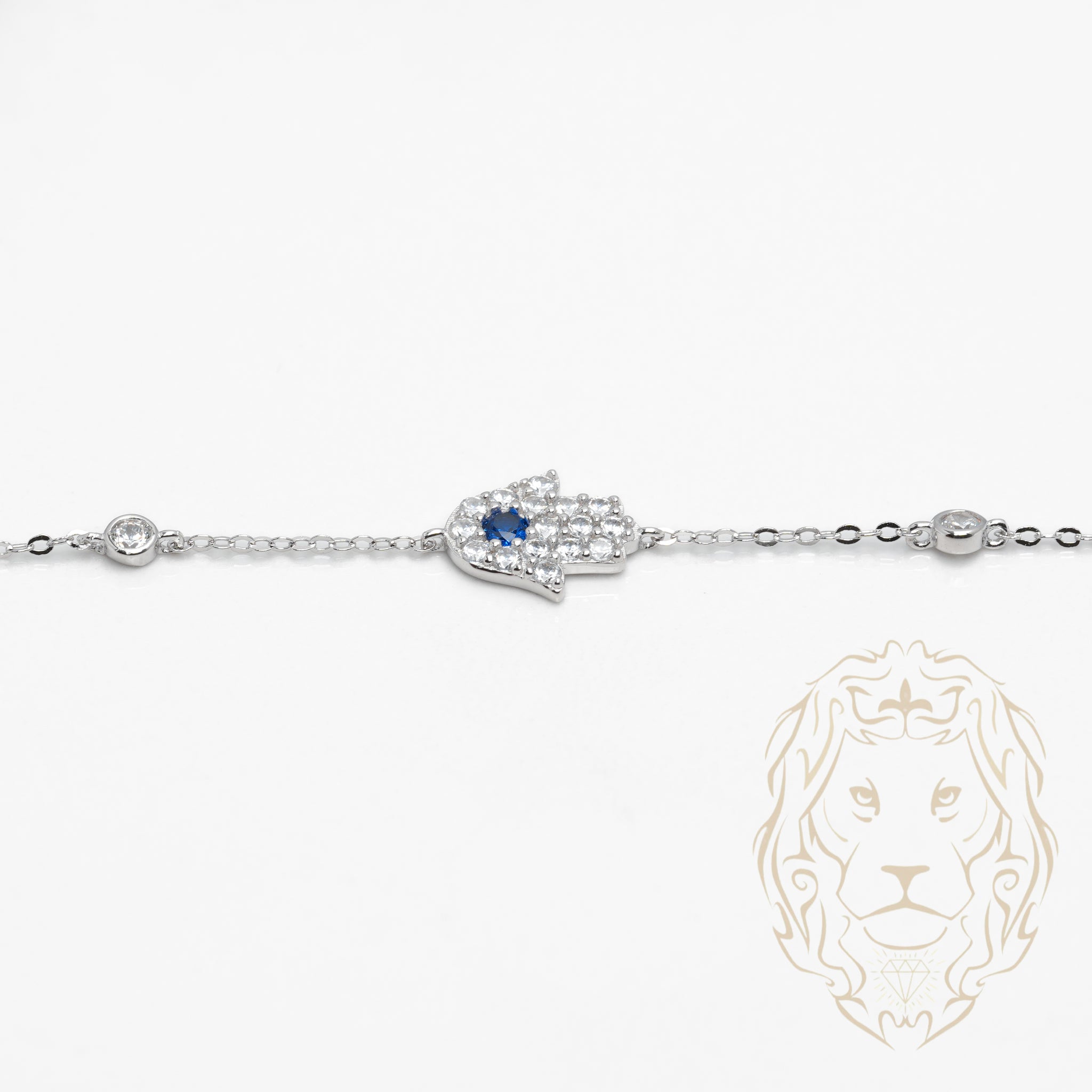 Ce bracelet en argent est orné d’une main de fatima pavée de cz, pour allier style et signification profonde.