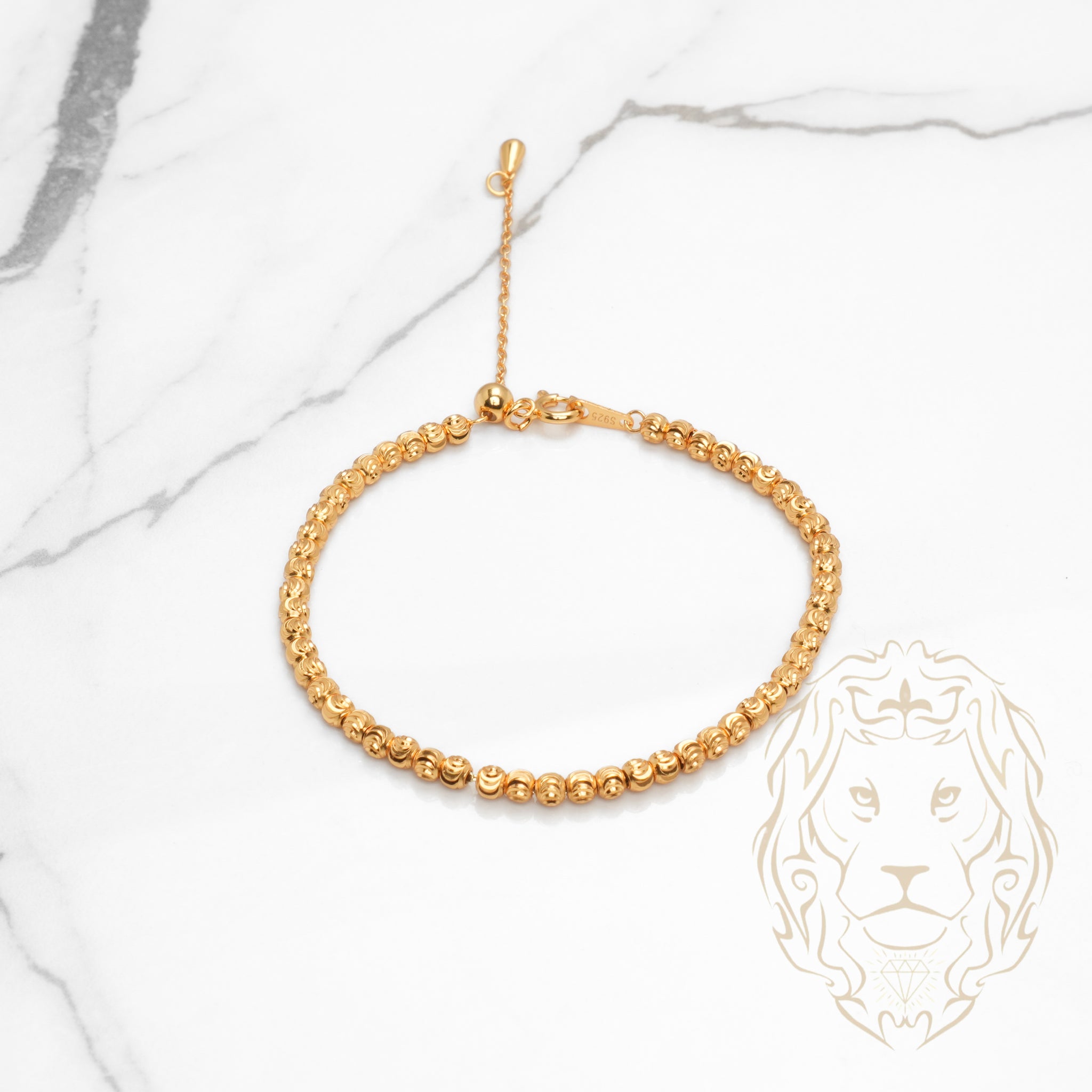 Ce bracelet en argent plaqué or est orné de perles coupe lune de 3mm, apportant une touche d’éclat céleste à votre poignet.