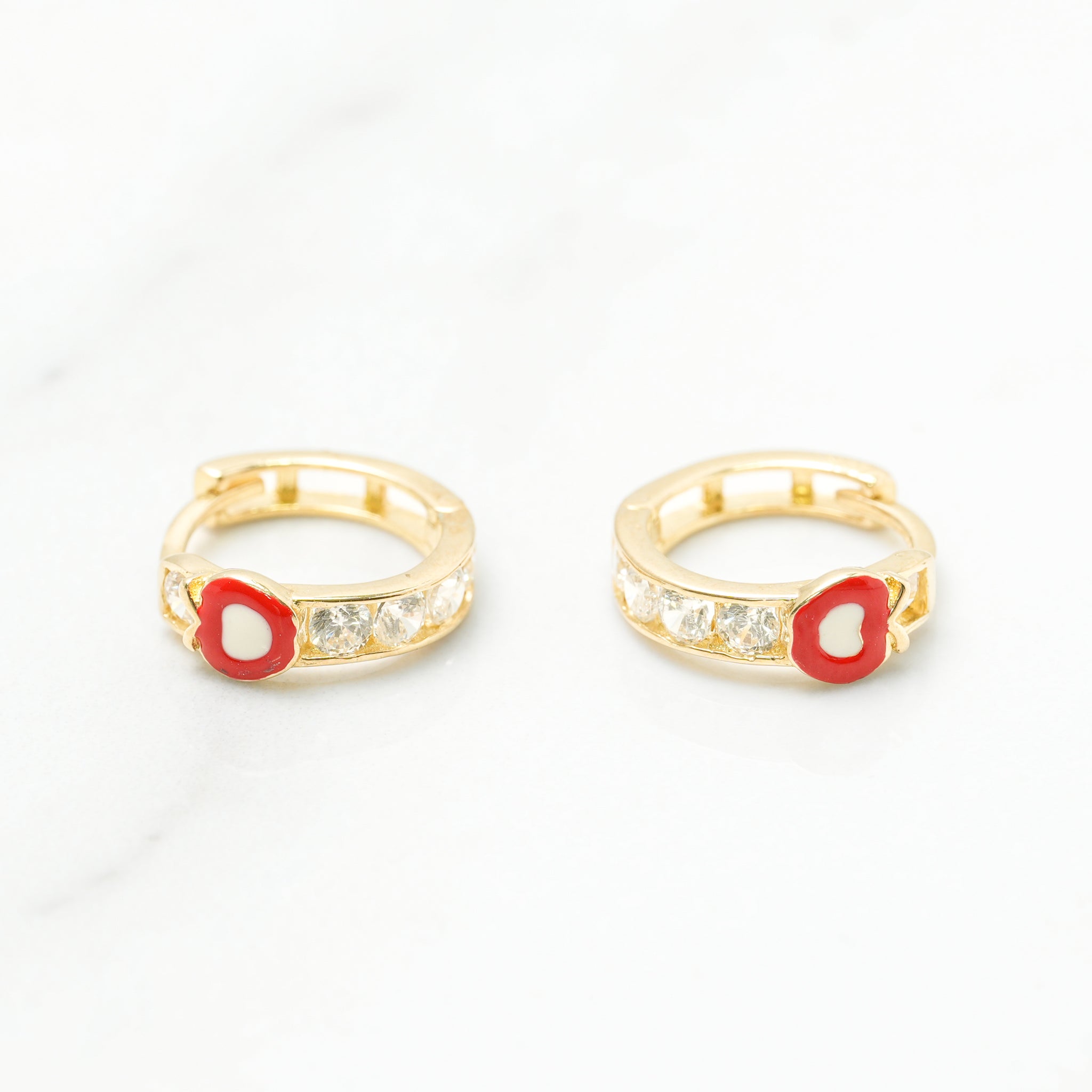 Huggies - 10K gold channel set cz stones with apple - BOG244