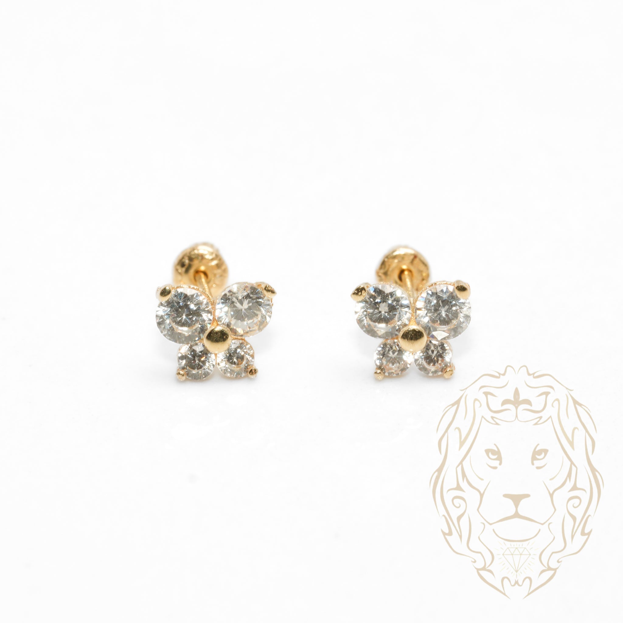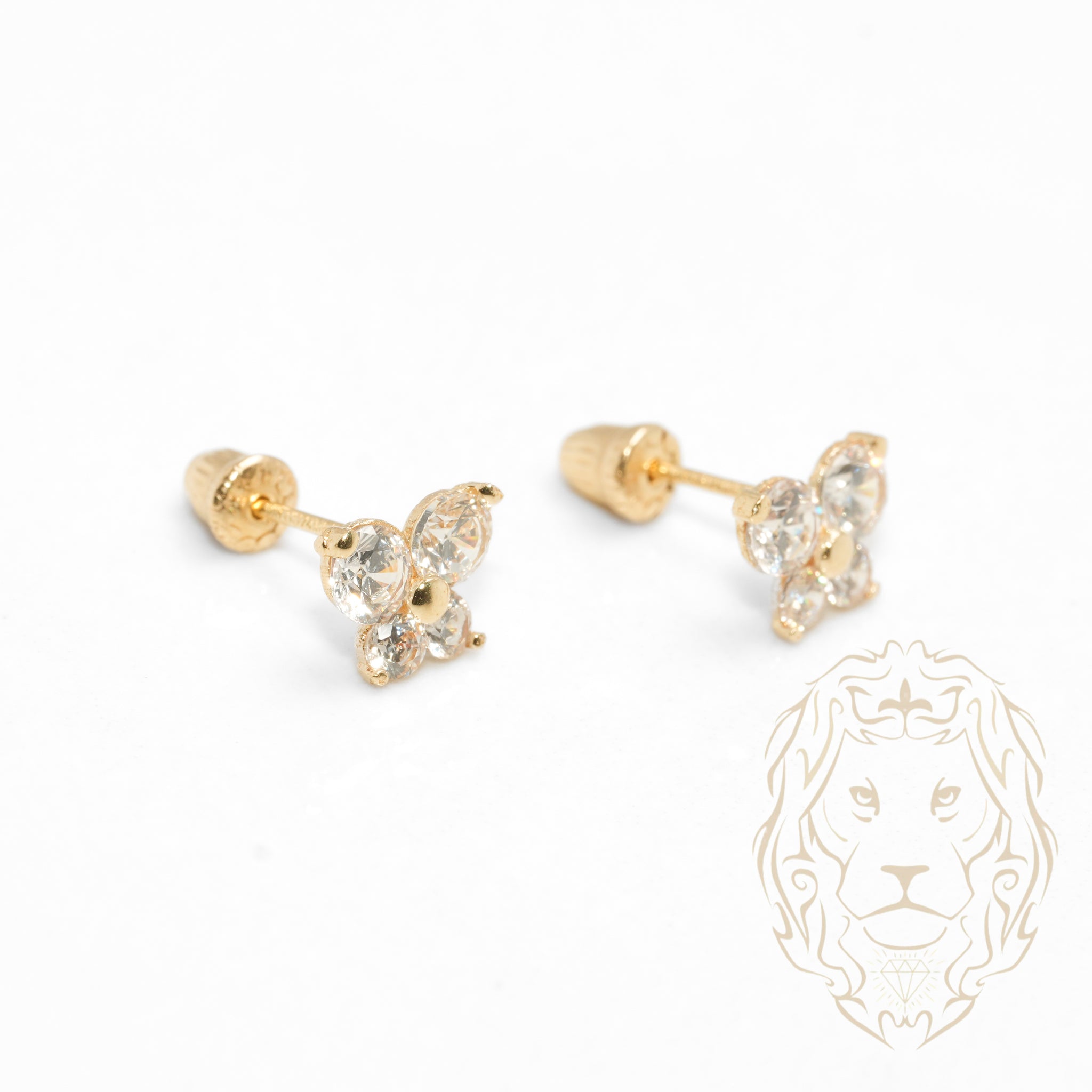 Studs to screw - 10K Gold yellow butterfly cz stones - BOG726