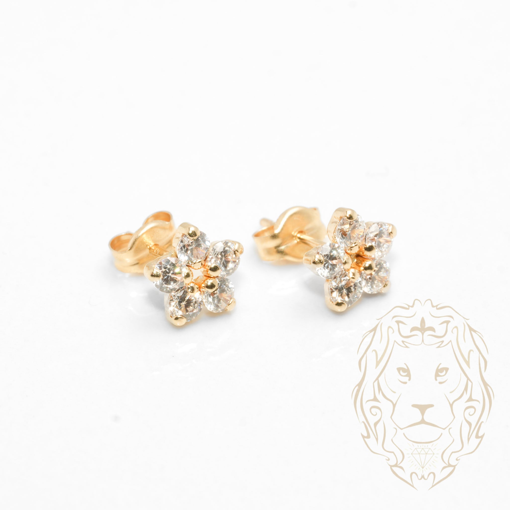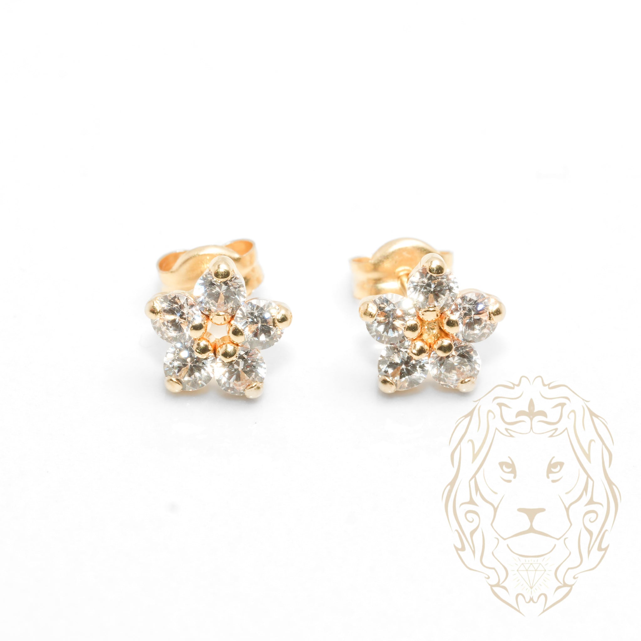 Studs - 10K Gold Flower Cz Stones - BOG783