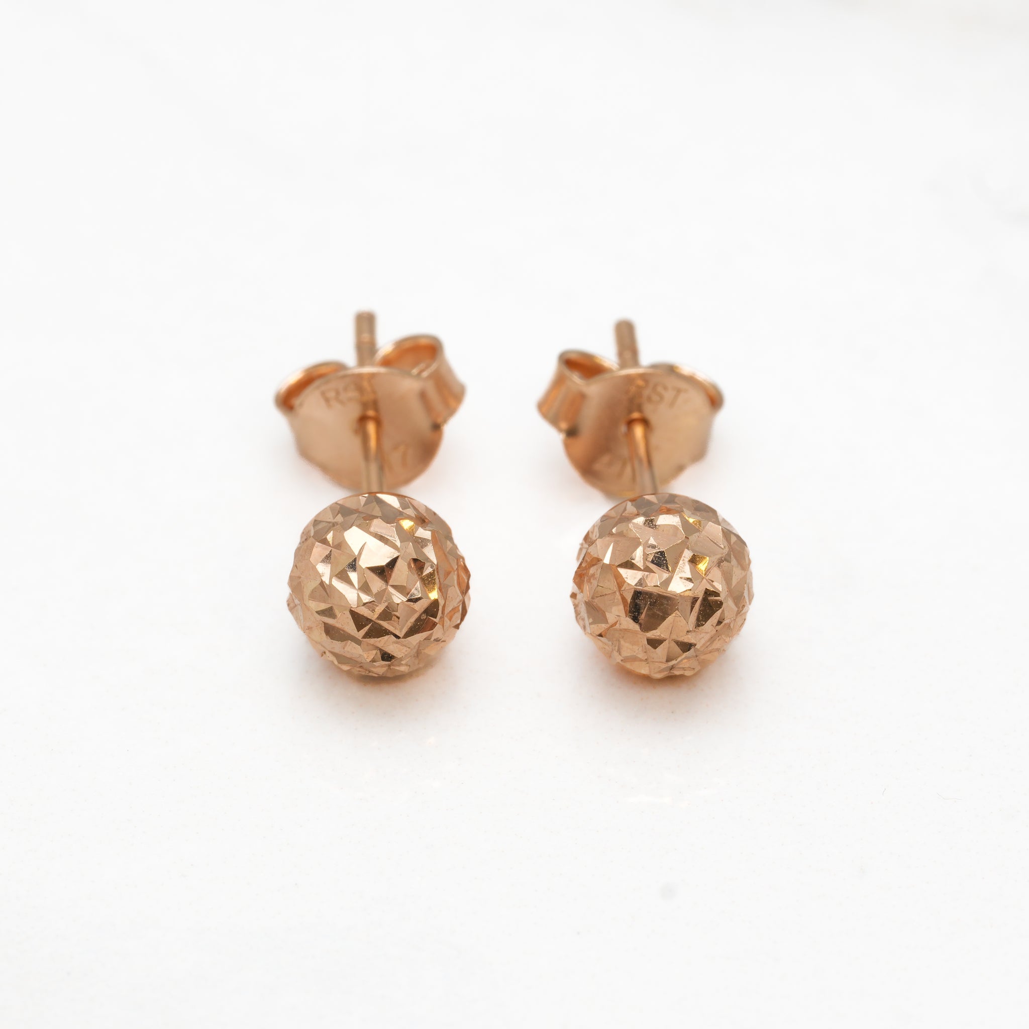 These 10K rose gold stud earrings with 6mm pearls and diamond cut add a subtle, refined sparkle.