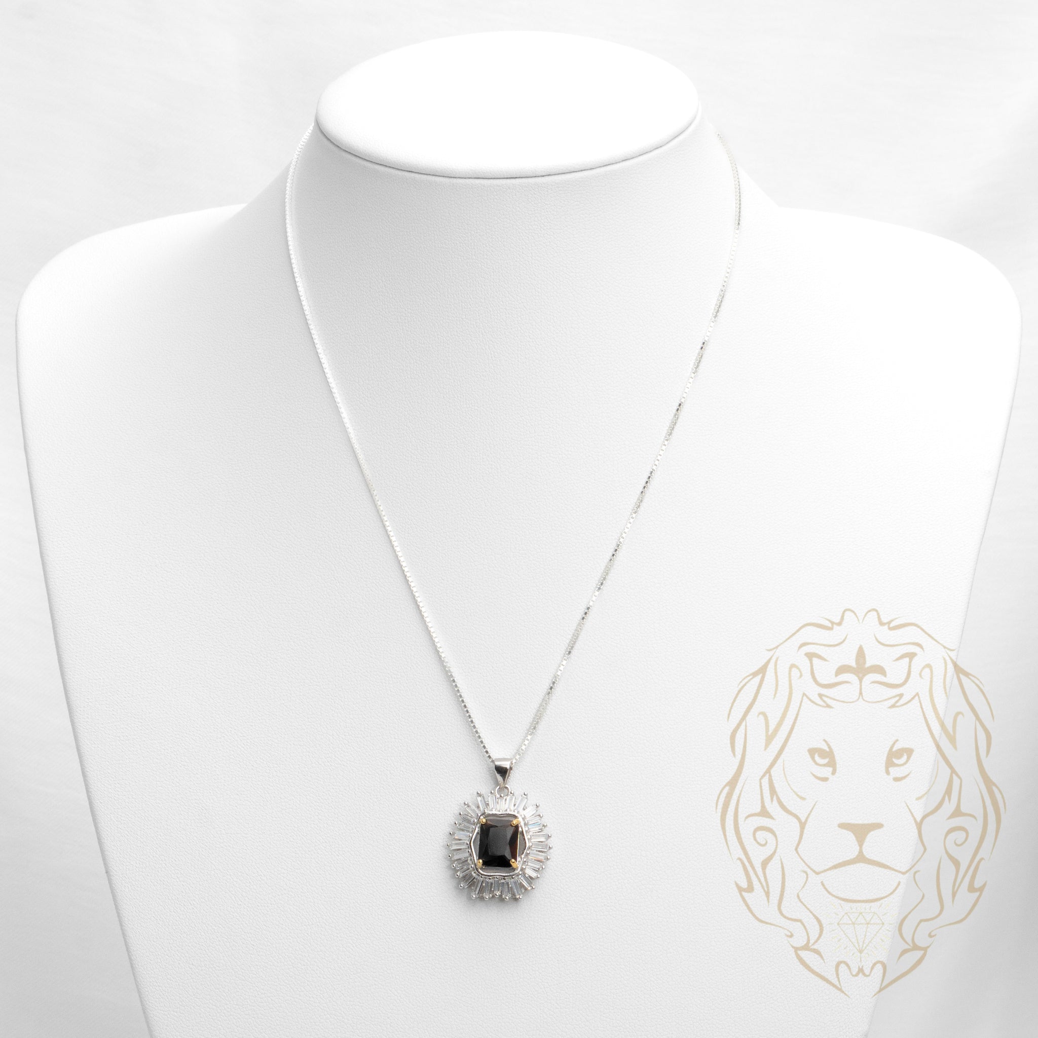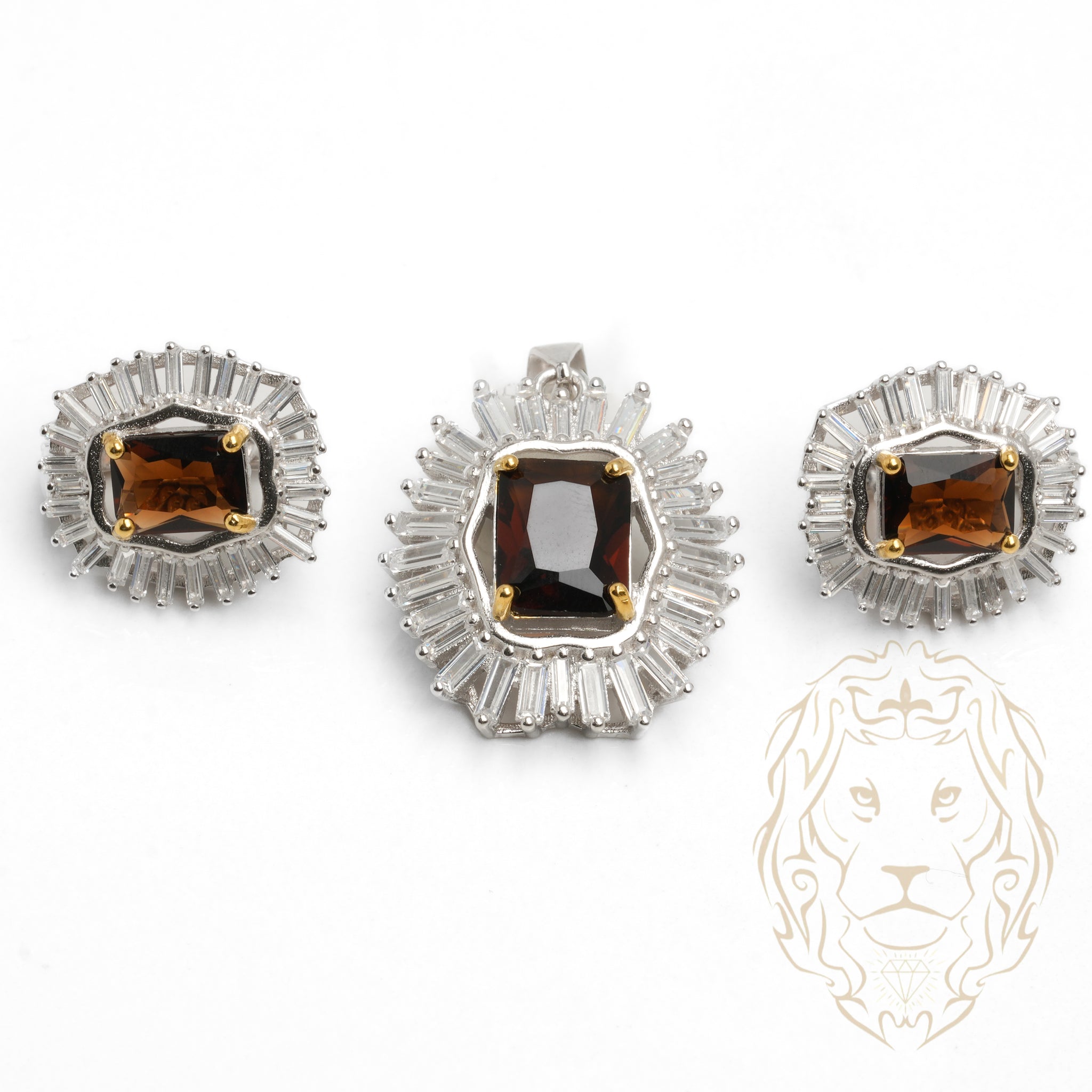 Ensemble - Argent collier pendentif halo en cz coupe baguette avec pierre brune & boucles d'oreilles - ENS007