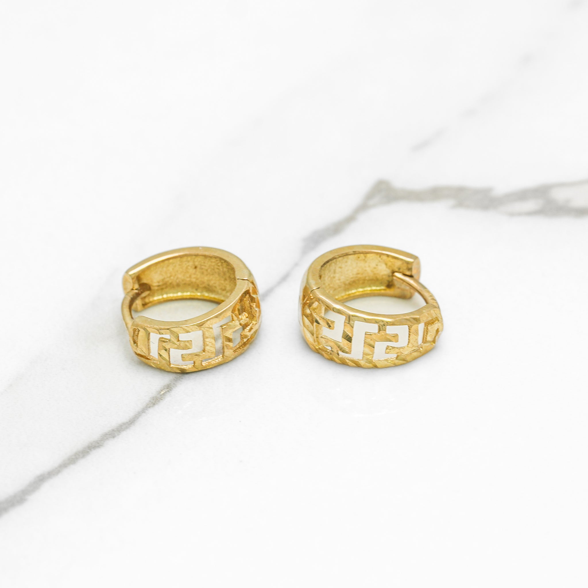 Huggies - 10K yellow gold grrecque key design diamond cut - BOG328