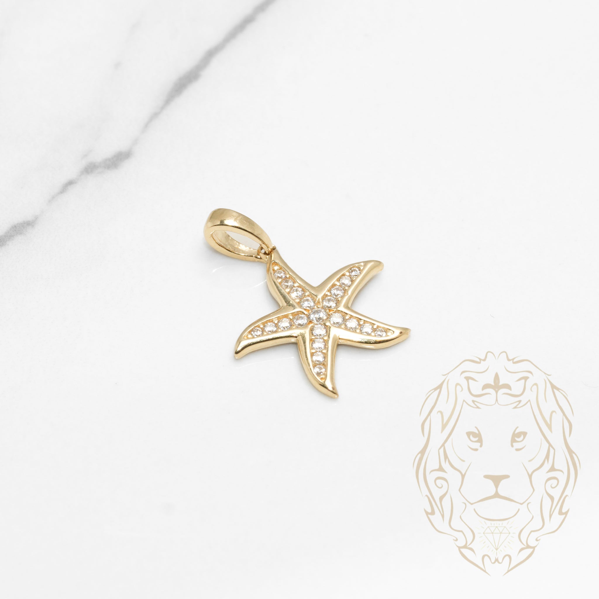 Pendentif en or jaune 10K en forme d’étoile de mer, pavé de cz scintillants, parfait pour un look estival et poétique.