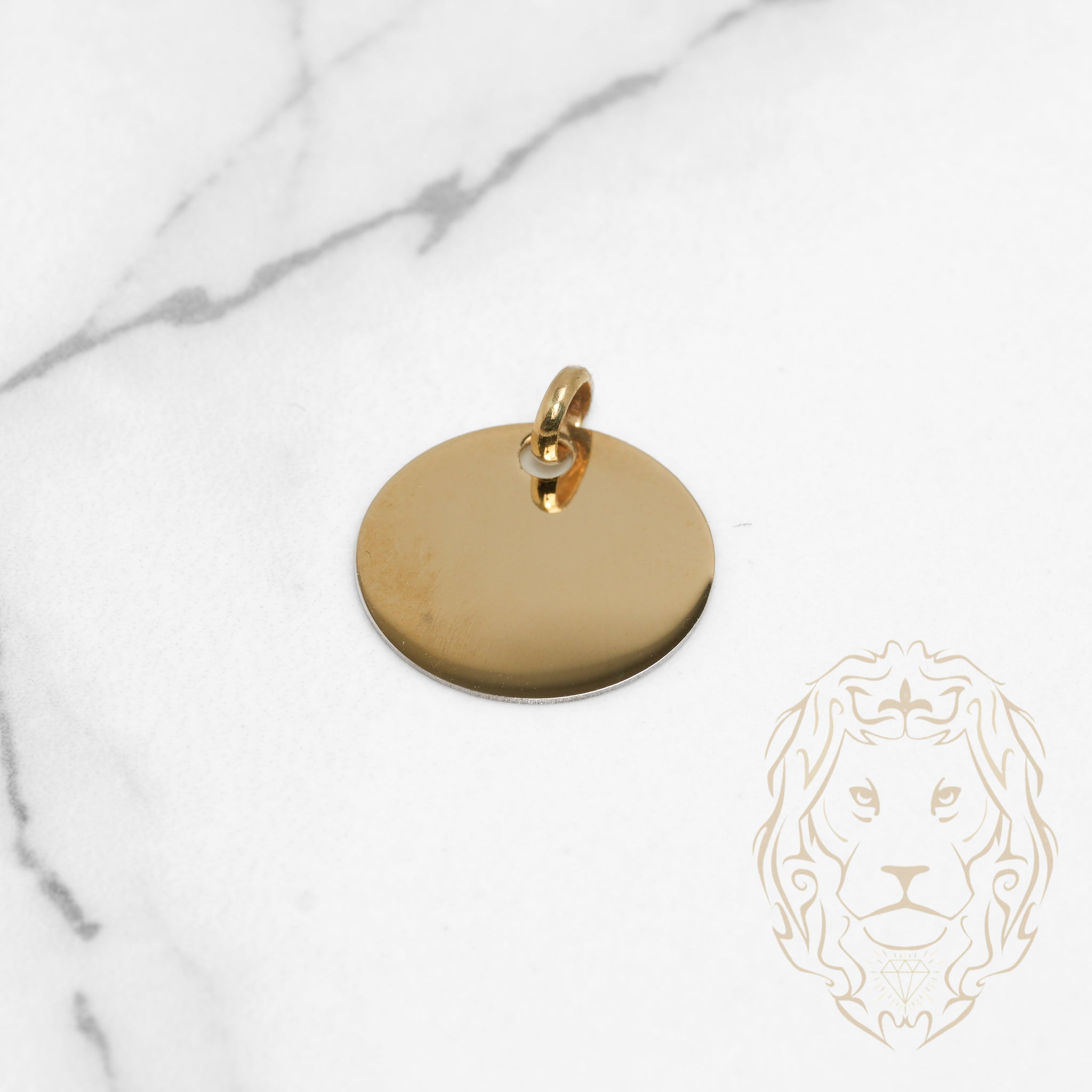 Pendentif médaillon de 15mm en or jaune 10K, une toile précieuse pour une gravure sentimentale.