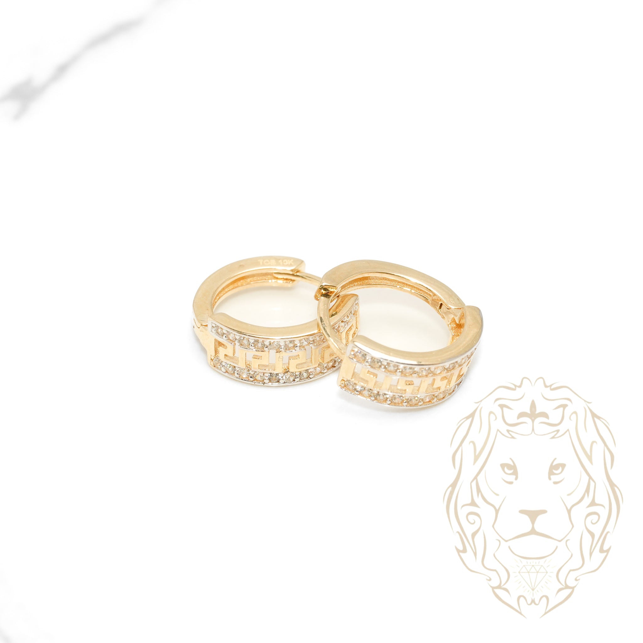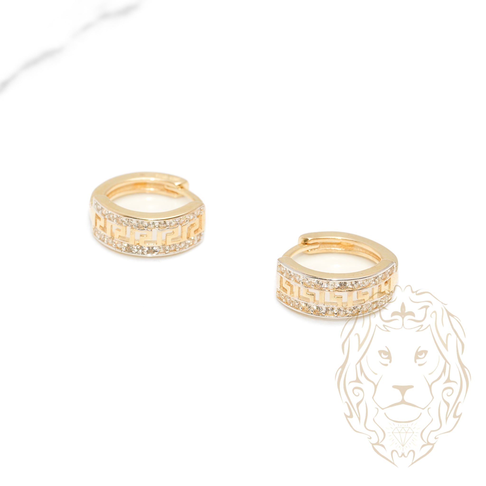 Huggies - 10K yellow gold Greek key motif with cz pavement - BOG678