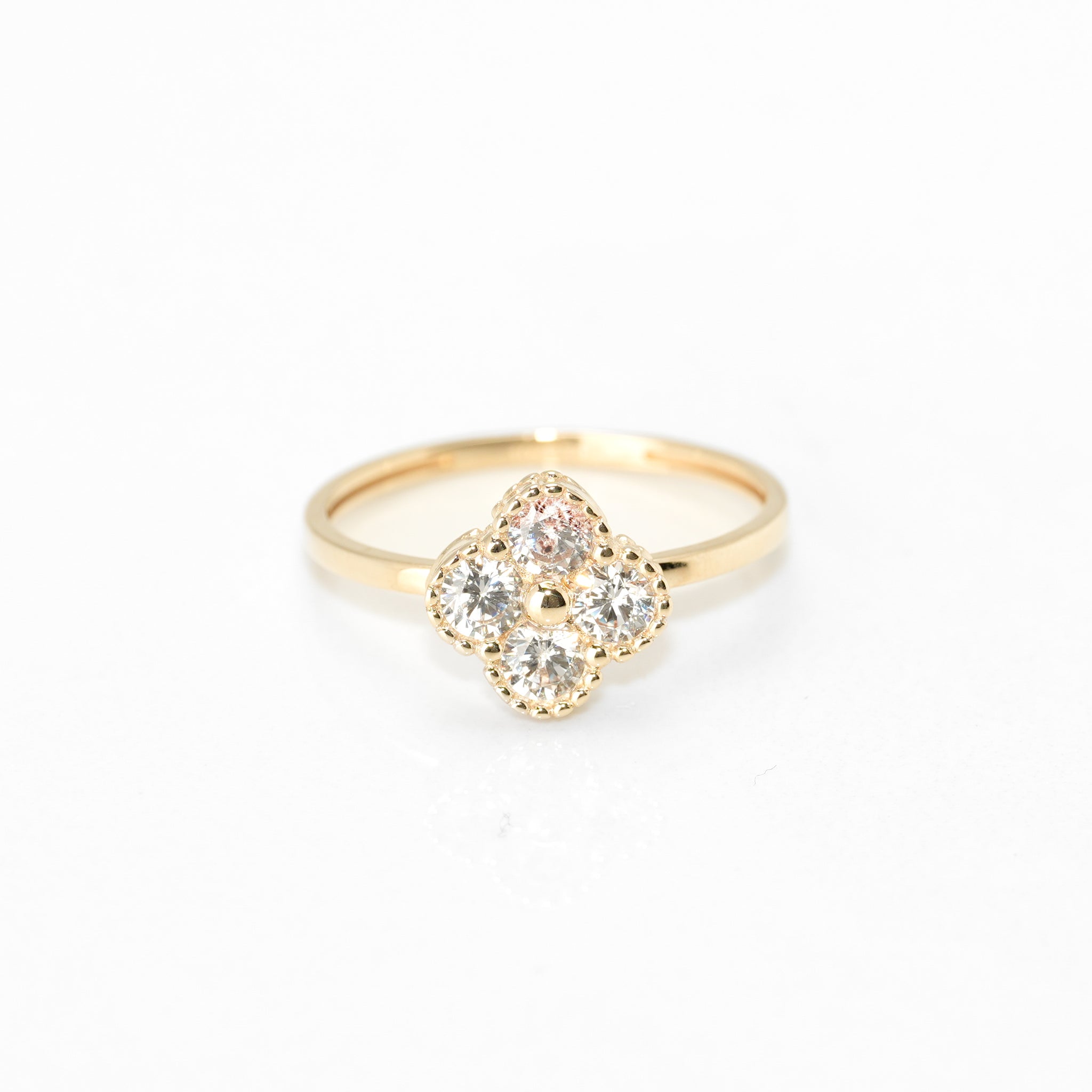 Lady's ring - 10K yellow gold clover made with cz stones - RIG444