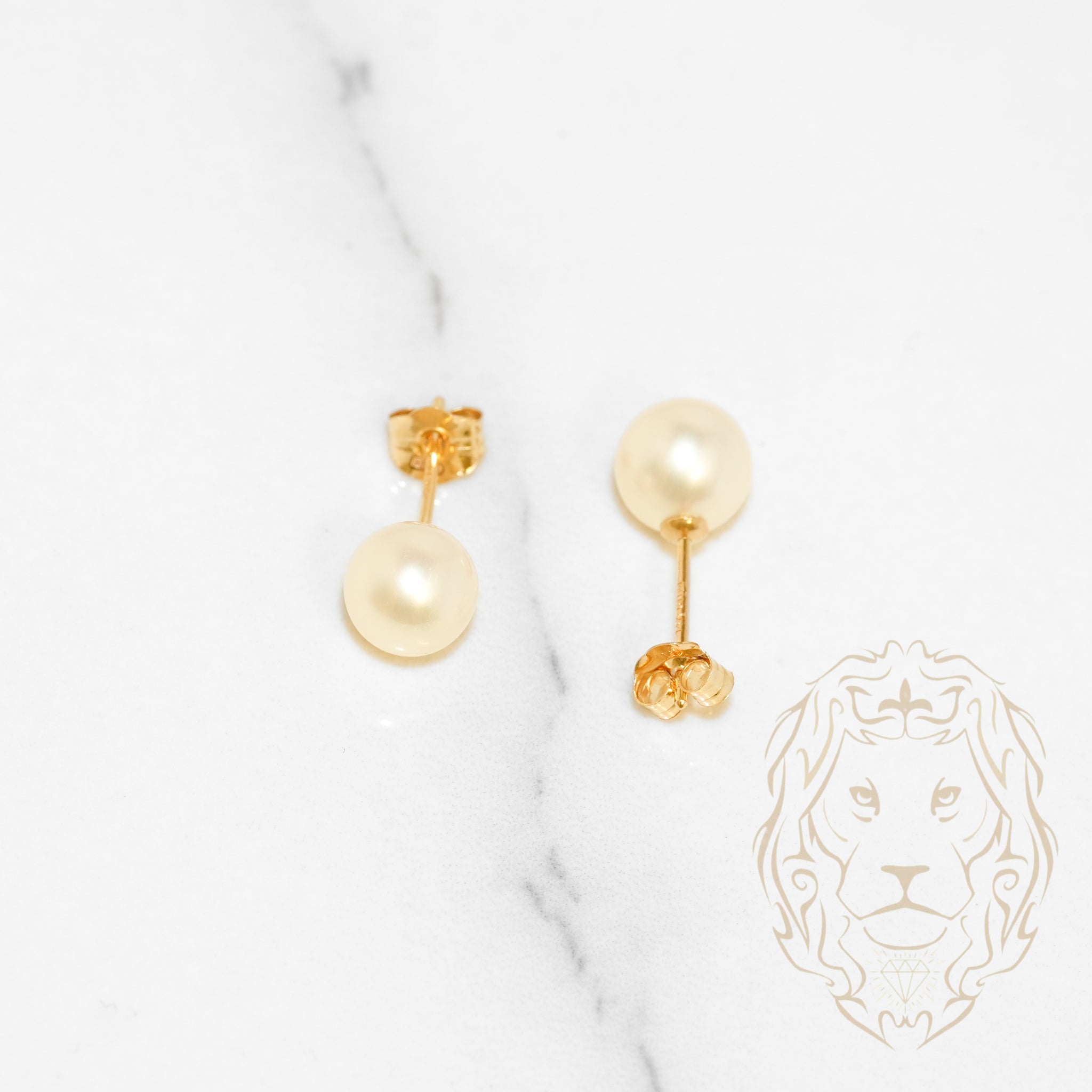These studs in 14K yellow gold, accented with 5.5mm freshwater pearls, add a subtle, sophisticated elegance.
