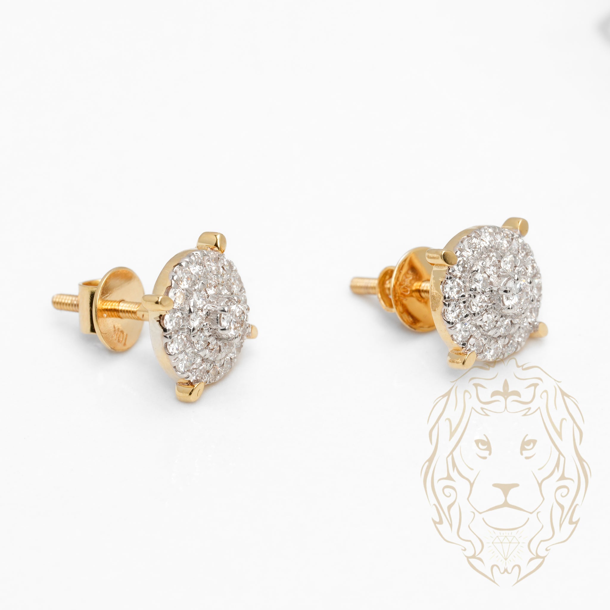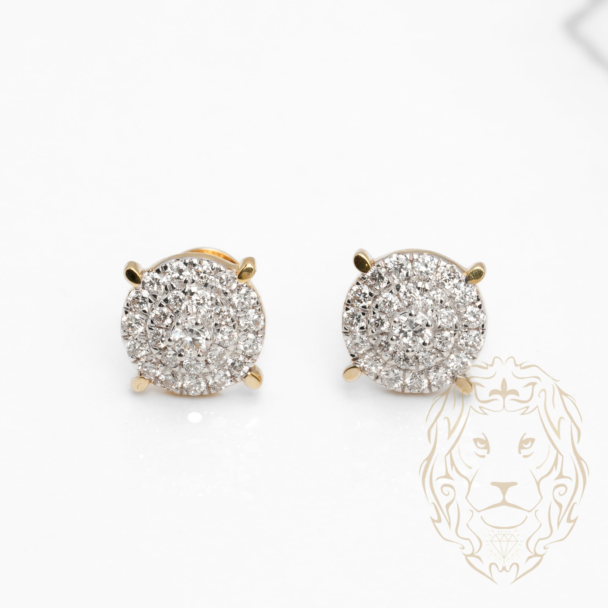 Studs circulaires en or 10K deux tons jaune et blanc, pavés de diamants de laboratoire VVS totalisant 0.61CT. Un classique revisité.