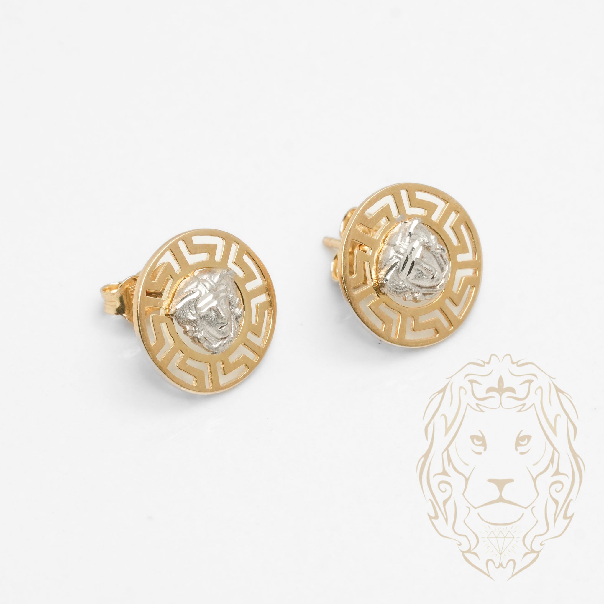 Boucles d’oreilles studs Medusa en or deux tons avec finition coupe diamant, riches en caractère.