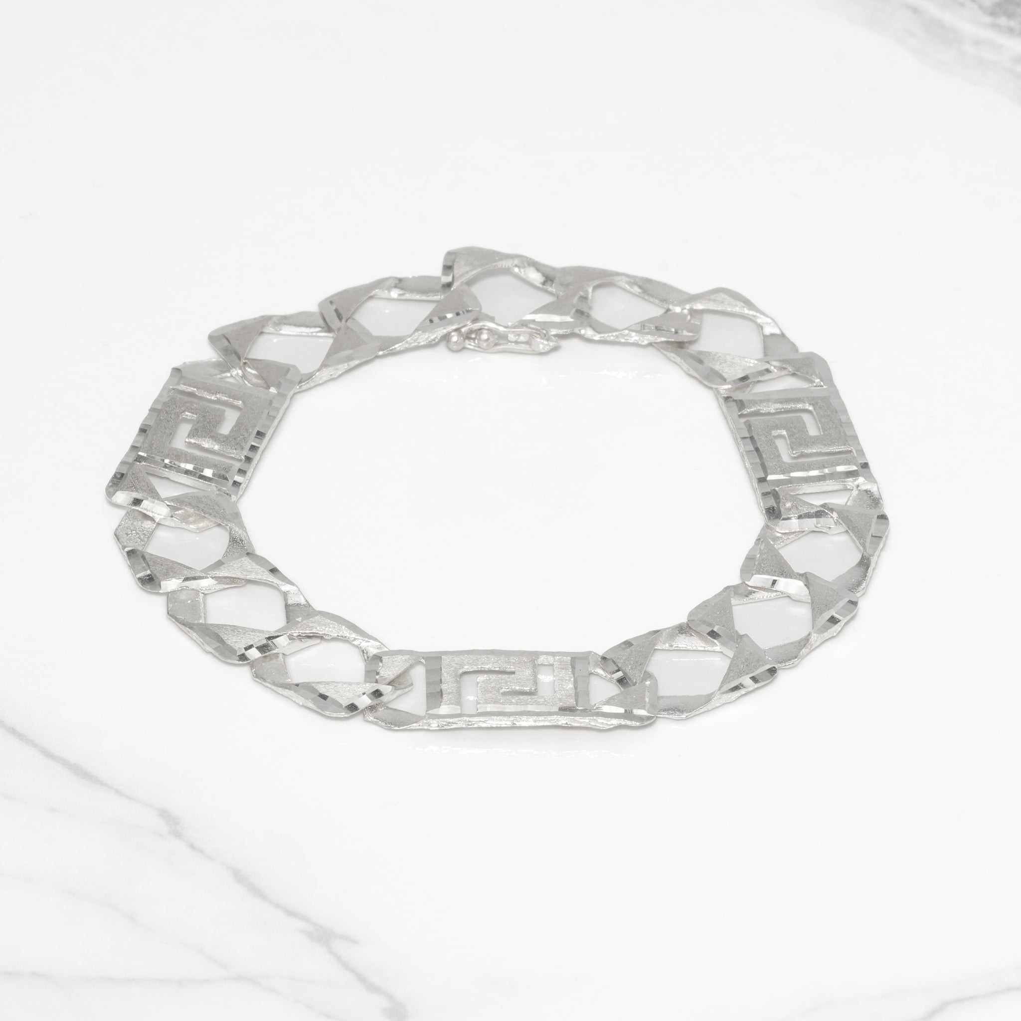 Men's Bracelet - Silver Bracelet & Greek Key Double-Sided Diamond Cut 12mm 8" - BRS007